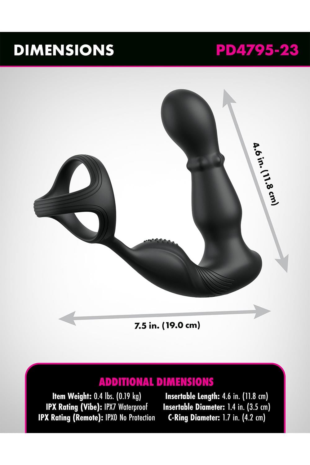 Indulge in the latest innovation in perineum and prostate play with the Anal Fantasy Elite Collection Ass-Gasm Slide & Glide. Based on our best-selling Ass-Gasm framework, we’ve added an exclusive, sliding ring of pleasure pearls designed to elevate P-Spot stimulation to unparalleled heights. Thrill yourself with 10 unique functions, as the pleasure pearls glide along the shaft of the P-Spot plug, producing tantalizing friction and stimulation like you’ve never felt before. With the plug in your ass and the ring wrapped snug around your cock and balls, you’ll enjoy the most explosive ass-gasm ever!But the innovation doesn’t end there. The Slide & Glide boasts a powerful vibrating P-Spot massager and a textured Perineum Stimulator that also share a full range of customizable speeds and vibration patterns that will instantly send you over the edge. Control all the action with the easy push-button controls on the base, or use the handy remote for an intense, hands-free experience in solo or partner play! Last but not least, the Ass-Gasm Slide & Glide’s waterproof rating lets you turn bath time into play time, anytime!Crafted from premium Elite Silicone and boasting an ergonomic design, the Ass-Gasm Slide & Glide takes perineum and P-Spot stimulation to the next level! Strap yourself in and slide into the most intense ass-gasm you’ve ever experienced!Exclusive sliding pleasure pearls: 3+7 modes of Slide & Glide stimulation!Pleasure pearls glide along the shaft of the P-Spot plug3 Powerful multi-speed motors: enjoy the most explosive orgasm ever!Textured perineum stimulator: 3+7 modes of vibrationP-spot/perineum vibration: 3+7 modes of vibrationC-Ring & Ball Strap: enjoy the most explosive ass-gasm ever!Includes rechargeable remote: uses the same charge cordMagnetic charging plug: ready when you areBoth product and remote are easily and conveniently rechargeable, offering hours of enjoymentTravel lock: for discretion. Both remote and vibe ship with travel lock on and unlock when chargedTotal Length: 7.5 inch / 19,0 cmTotal Weight: 0.5 lb / 0,22 kgInsertable Length: 4.6 inch / 11,8 cmInsertable diameter: 1.4 inch / 3.5 cmC-Ring diameter: 1.7 inch / 4,2 cmIPX Rating: IPX7Remote: IPX0Battery type: rechargeable Lithium-IonRun time: 60 minsCharge time: 90 mins.Charger type: Magnetic/USB-AOperating Instructions:Vibration and sliding functions can be used together or separately for a wide variety of unique pleasure experiences.Turn ON: Press and hold the POWER button to turn ON. Both POWER and SLIDE buttons will flash 3 times to signal standby mode.P-Spot Vibration: Press the POWER button to cycle through 10 functions (3+7).Sliding Pleasure Pearl Stimulation: Press the SLIDE button to cycle through 10 functions (3+7).Turn OFF: At any time during operation, press and hold either POWER or SLIDE buttons to turn OFF. Both POWER and SLIDE buttons will flash 3 times to signal shutdown.REMOTE OPERATIONTurn ON: Press and hold the POWER button for 3 seconds to turn ON and set in standby mode.P-Spot/Perineum Vibration: Press the P-SPOT/PERINEUM button to cycle through 10 functions (3+7). Press and hold to stop.Sliding Pleasure Pearl Stimulation: Press the SLIDE button to cycle through 10 functions (3+7). Press and hold to stop.Turn OFF: At any time during operation, press and hold the POWER button to turn OFF.Care Instructions:Rechargeable via the included USB Cord. Cleanup is a snap after the fun with antibacterial cleaner and warm water. Use plenty of Moist Lubricant for an extra-wet, extra-wild encounter.