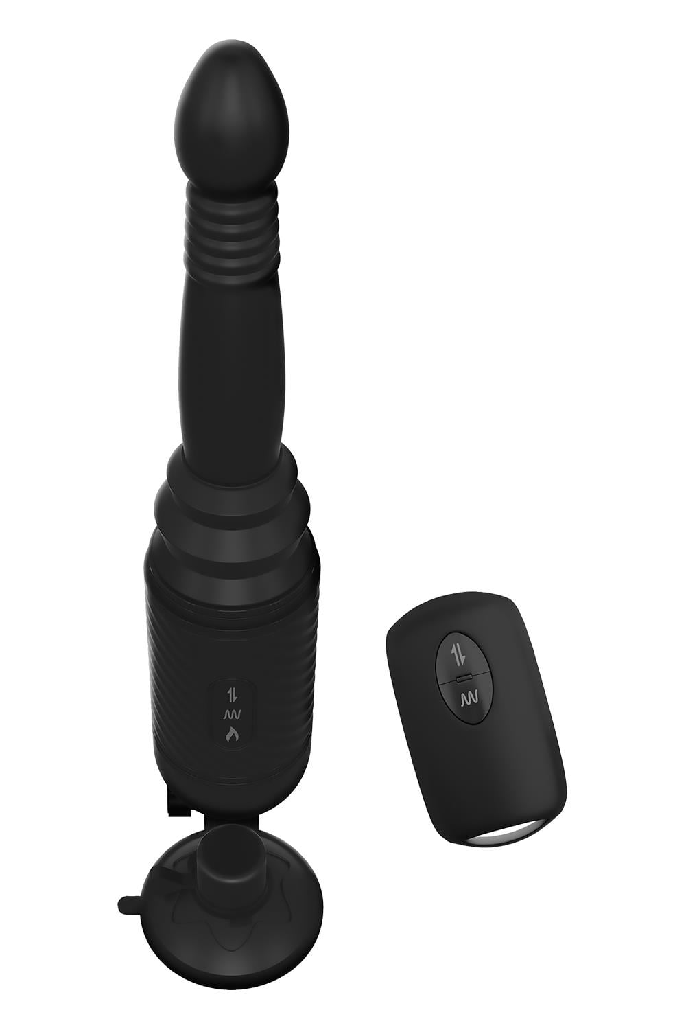 The Vibrating Ass Thruster features a powerful vibrating bullet at the tapered tip, a strong thrusting piston powered by a rechargeable motor, and an internal heating core that warms the shaft up to 40°C (104°F) with the push of a button. With separate controls for vibration, thrusting, and warming, you’re in total control of the fun!
