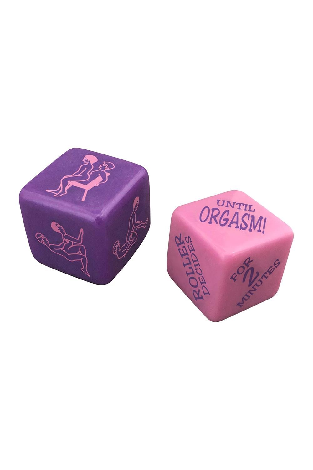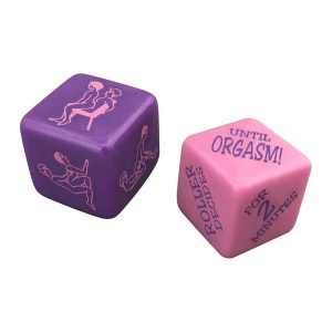 The Sex Dice game that works for any couple. The purple die instructs you what to do, and the pink die determines how long to carry it out. The roller decides who assumes each position and whether or not to include a toy.