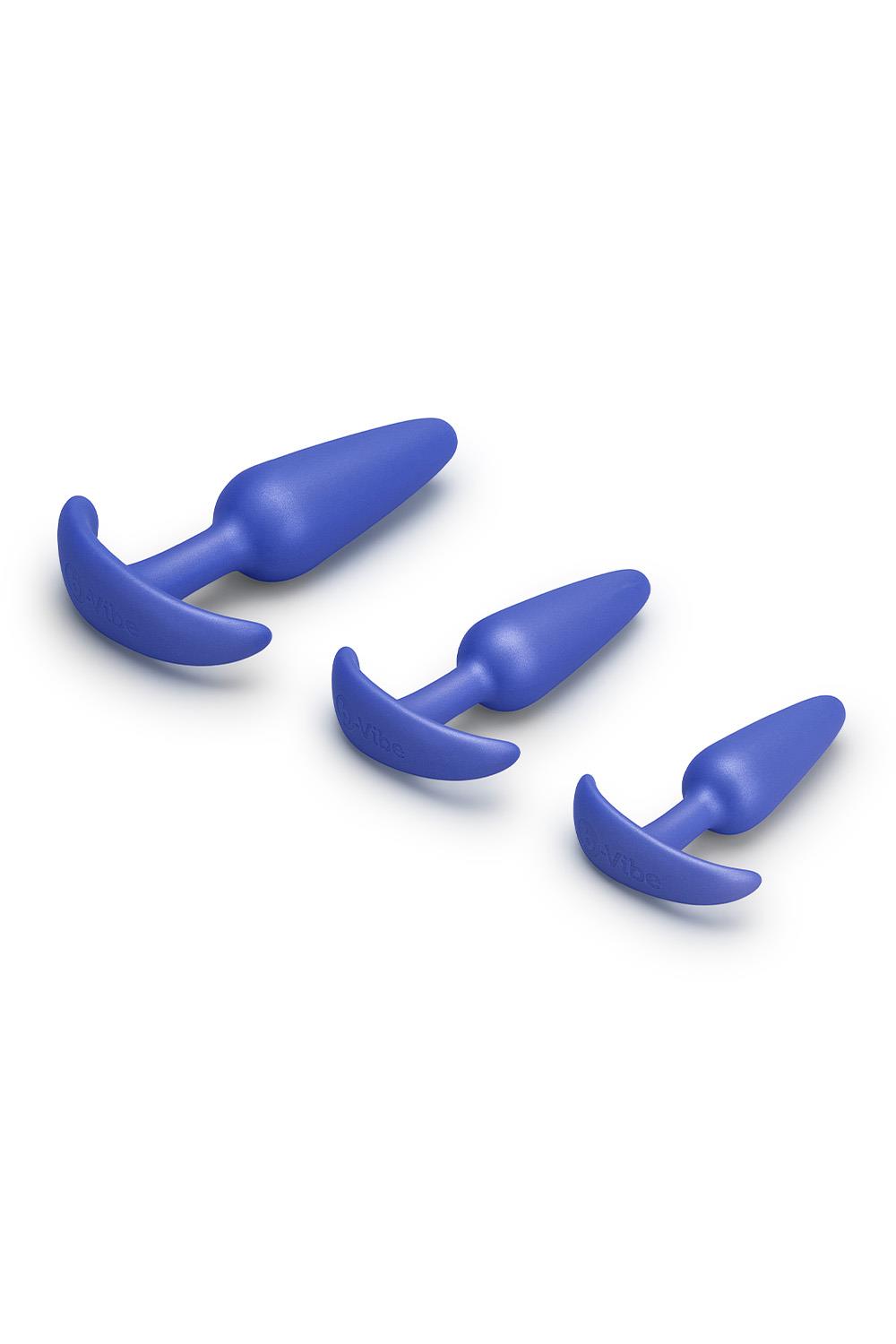 Ease into anal play with the b-Vibe Beginner Booty Bundle, thoughtfully designed for comfortable and gradual exploration. This set includes 3 sleek, body-safe silicone plugs in Small, Medium, and Large sizes, perfect for building confidence at your own pace. Whether enjoying solo or with a partner, this bundle is your gateway to new sensations and intimate discovery.Each plug features an ultra-smooth surface and a perfectly contoured, tapered design. The slender neck gradually widens into a rounded cone, allowing for effortless insertion and deeply satisfying sensations. Every detail is crafted to elevate your pleasure with comfort and ease.3-Piece Silicone Anal Training SetMaterial: Body-Safe SiliconeCompatible with any water-based lubricantLength:3.25 inch / 8,3 cm4 inch / 10 cm5 inch / 12,5 cmInsertable length:3 inch / 7,7 cm3.5 inch / 9 cm4.5 inch / 11,5 cmWidth, base:2 inch / 5 cm2.3 inch / 5,9 cm3 inch / 7,5 cmInsertable diameter, min:0.3 inch / 0,9 cm0.4 inch / 1,0 cm0.5 inch / 1,3 cmInsertable diameter, max:0.8 inch / 2,2 cm1 inch / 2,5 cm1.3 inch / 3,2 cm
