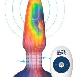 Take an ethereal trip to the promiscuous 60s and experience anal play without guilt with our latest masterpiece, the Peace & Love Tie-Dye Rimming Plug.This limited edition rimming plug aims to rekindle just what the world needs right now — peace, love, sex — through sexual awareness, sexual positivity, and sexual freedom.To embrace an era of euphoric sex, we created our most distinctive b-Vibe yet! Each Peace & Love Rimming Plug passes a special tie-dye process that’s 100% body-safe and makes the toy genuinely unique. No two plugs are the same, and they’re yours to enjoy for eternity.Get this far-out drop of psychedelic pleasure before it’s too late, baby!Insertable Size: 4.8 inch / 12,3 cmDiameter: 1.5 inch / 3,8 cmNeck Diameter: 1 inch / 2,7 cmSensation: Rotation & VibrationMotors: 2Material: Seamless Silicone