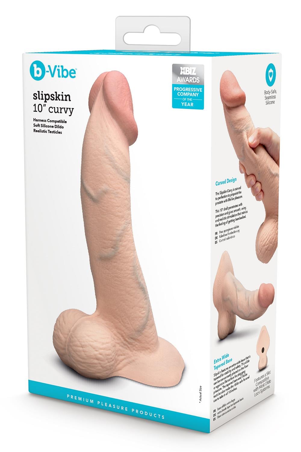 B-VIBE SLIPSKIN REALISTIC SILICONE DILDO 10 INCH CURVED CREAM