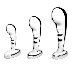 Train up or down to your prostate’s content with the b-Vibe Stainless Steel P-Spot Training Set. This set of three steel anal plugs positively hits the spot with a range of length and girth to train your booty for heavier and larger filling sessions.Like the pristine Prostate Plug and Anal Beads from the b-Vibe Stainless Steel collection, the P-Spot set is made from body-safe stainless steel and features a wide tapered base. These plugs are perfect for comfortable, safe insertion and removal while being compatible with all lubricants.Take your bussybuilding to an olympian level with b-Vibe’s Stainless Steel P-Spot Training Set.3 sizes of pleasureFeaturing a set of 3 prostate plugs in graduated order for training. Increase your sphincter capacity with pleasure by gradually sizing up or down to the next textured plug, providing you with girthy, ridged pleasure.100% stainless steelFrom our first line of anal toys made of 100% stainless steel, this set of plugs are super easy to clean, hypoallergenic, and compatible with all lubricant types. Train up your capASSity with the three graduated plugs with 250 to 645 gr of weighty filling sensations or use the adaptive texture of steel to experiment with temperature play.Designed for prostate playCurved and swerved to pinpoint the prostate, this toy glides directly to your pleasure zone so that you can focus on the pleasure and not the aim.Anal friendly tapered baseMaterial: Stainless SteelEasy to cleanHypo-allergenic and body-safeWaterproofSafe for use with all lubricantsSmallest PlugWeight: 0.55 lbs / 250 gTotal Size: 3.25 inch / 8,25 cmInsertable Size: 2.72 inch / 6,9 cmWidest Insertable Diameter: 0.98 inch / 2,5 cmBase Diameter: 2.27 inch / 5,77 cmBase Size: 0.57 inch / 1,35 cmMiddle PlugWeight: 0.85 lbs / 385 gTotal Size: 4.04 inch / 10,25 cmInsertable Size: 3.5 inch / 8,9 cmWidest Insertable Diameter: 1.26 inch / 3,2 cmBase Diameter: 2.27 inch / 5,77 cm Base Size: 0.57 inch / 1,35 cmLargest PlugWeight: 1.42 lbs / 645 gTotal Size: 5.08 inch / 12,9 cmInsertable Size: 4.55 inch / 11,55 cmWidest Insertable Diameter: 1.57 inch / 4,0 cmBase Diameter: 2.27 inch / 5,77 cmBase Size: 0.57 inch / 1,35 cmInstructions: Clean with soap and water, in the dishwasher, or boil them for 3 to 4 minutes to fully disinfect.