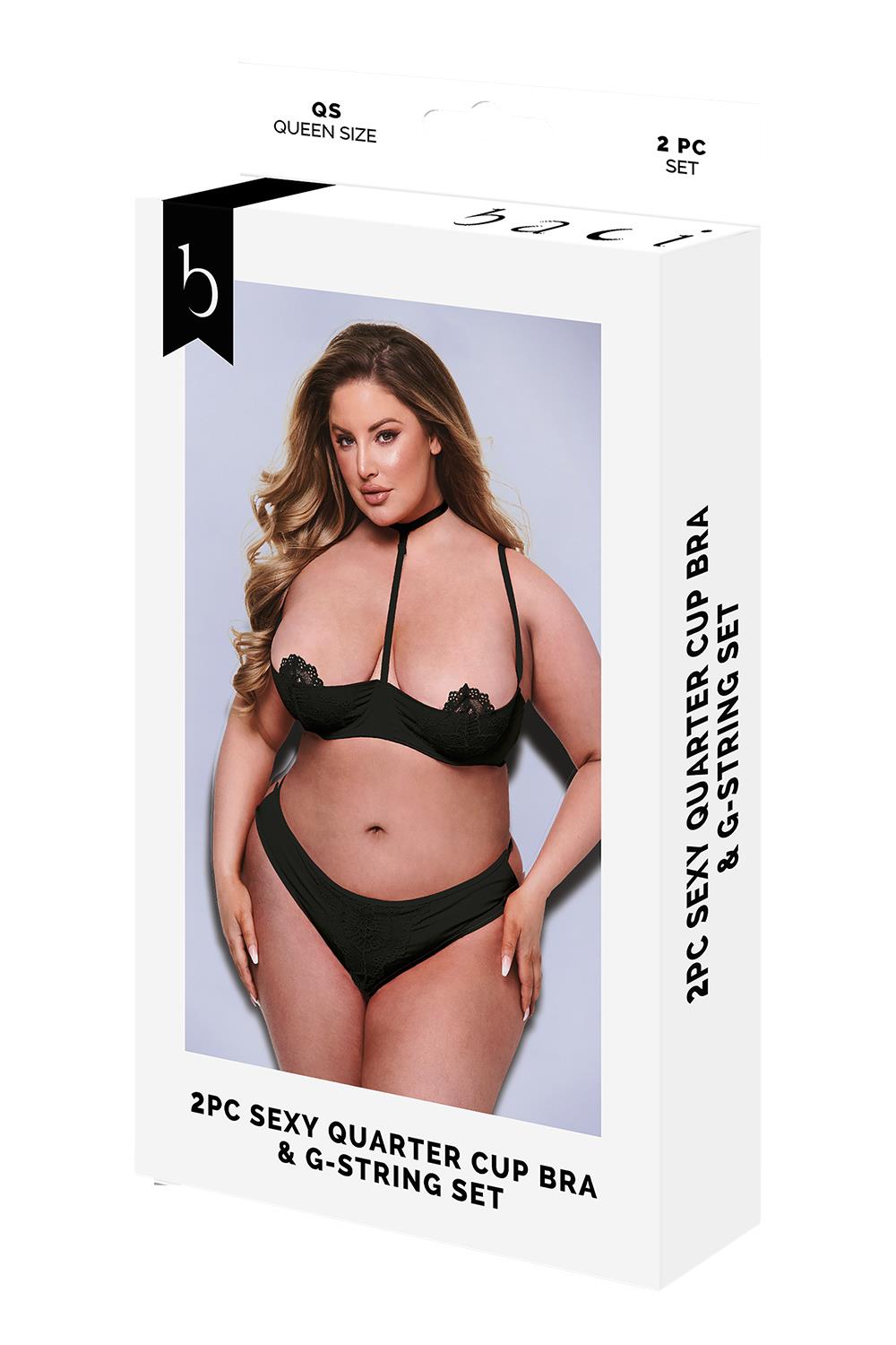 BACI 2PC SEXY QUARTER CUP BRA & G-STRING SET BLACK, QS