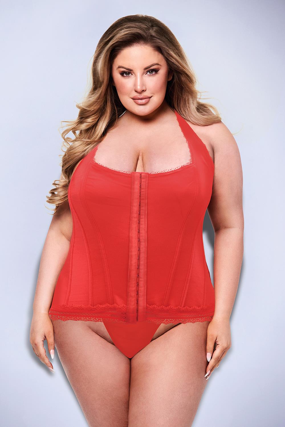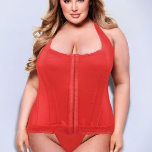 This corset from Baci exudes style and simplicity, with a hook & eye closure at the front & lace up ties on the back. And the edges of the corset are almost doily-like, showing off that extra sexiness!