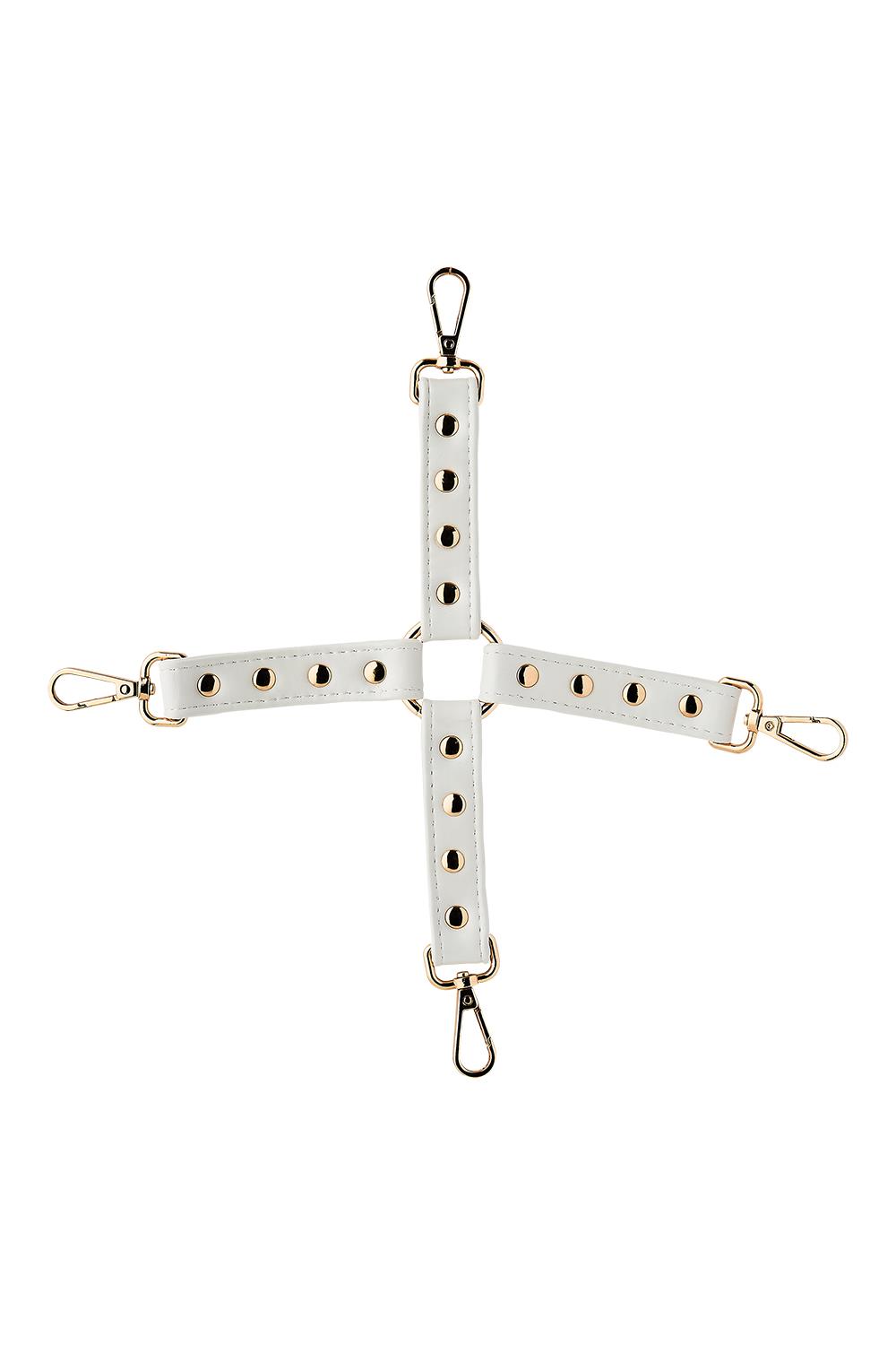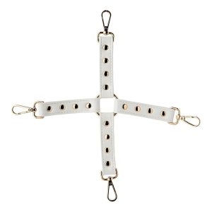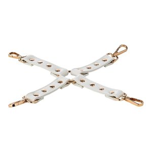 Ten krawat wieprzowy z kolekcji Blaze Elite jest wykonany z białej sztucznej skóry z metalowymi detalami w kolorze złotym, dzięki czemu wygląda bardzo stylowo. Wzbogać swoją grę w bondage za pomocą krawata wieprzowego, aby przymocować ręce i nogi łodzi podwodnej. 4 haczyki muszkietowe mogą być używane do mocowania łańcuchów, lin, kajdanek, mankietów na kostki i innych akcesoriów do wiązania, na przykład pasujących mankietów na nadgarstki i kostki z kolekcji Blaze Elite.