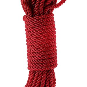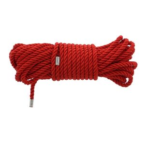 Super soft red bondage rope with a silky finish, 10 meters long. Both