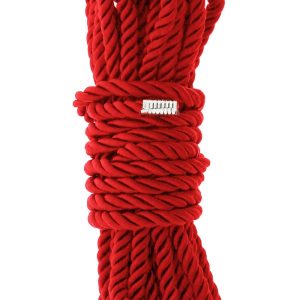 Super soft red bondage rope with a silky finish, 5 meters long. Both ends