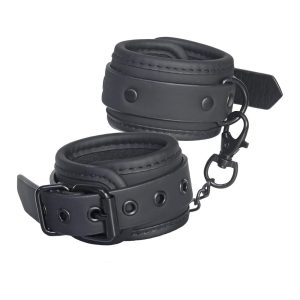 stylish black hand cuffs with all black nickel free hardware and lined in a