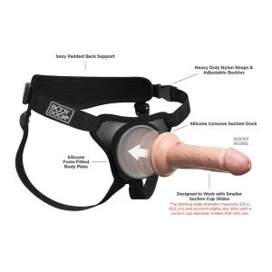The patented Body Dock® Elite Mini takes strap-on play to a whole new level! It features a premium silicone docking plate that conforms to your body, adjustable side-release buckles, and padded back support. The Elite Mini was specifically designed for dildos with smaller suction cups, and provides a more petite fit. Changing your favorite strap-on accessory has never been faster or easier! It’s as simple as attaching the suction cup on your favorite dildo or vibrator to the docking plate, while the nylon straps easily adjust to fit most sizes and body types. Best of all, it works with most dildos on the market today, including some you may already own. No rings. No snaps. No hassle!