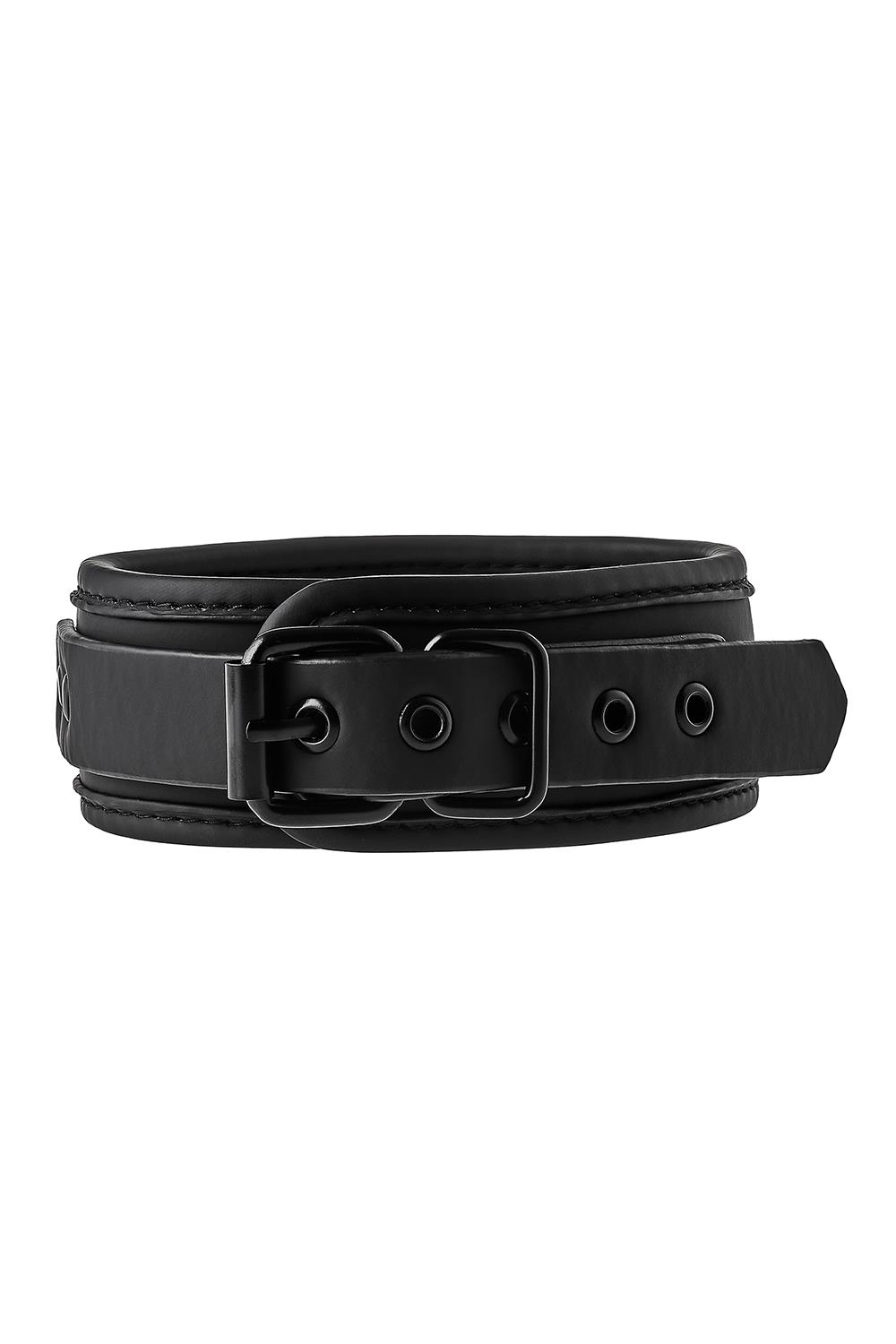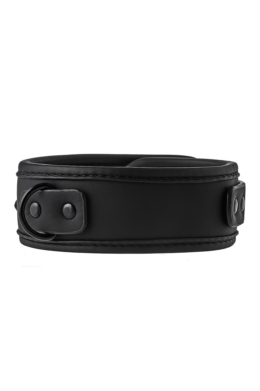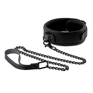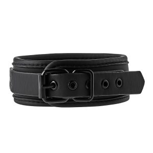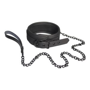 Ten czarny zestaw z kołnierzem i smyczą ma wszystkie elementy bez niklu i jest wyłożony miękkim, ale wytrzymałym materiałem neoprenowym, co zapewnia seksowną i wygodną zabawę. Łatwo dopasować rozmiar dzięki zapięciu na klamrę. Czarną metalową smycz z przymocowaną pętlą na nadgarstek można łatwo zapiąć lub odpiąć za pomocą klipsa muszkietonowego.