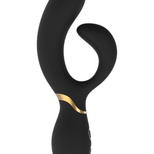 Wibrator Amélie z kolekcji Elite od Dream Toys to czarny wibrator w duecie ze stylowymi złotymi akcentami i dość dużą, elastyczną główką. Dwa potężne silniki działają jednocześnie i oferują 7 silnych i głębokich wzorców wibracji oraz 3 prędkości. Królik jest elastyczny i giętki. Może pozostać w zgiętej pozycji. Wibrator Amélie można ładować za pomocą dołączonego kabla USB-pin. Wykonany jest z silikonu spożywczego i ABS, wodoodporny IPX7 i bezpieczny dla ciała, wolny od ftalanów i lateksu. Obsługę można wykonać za pomocą 2 przycisków u podstawy wibratora: górnego przycisku do włączania/wyłączania wibratora, dolnego przycisku do zmiany programów wibracji. Kolekcja Elite jest czarna ze złotymi akcentami, z subtelnymi złotymi pierścieniami wokół przycisków i pasujące opakowanie.
