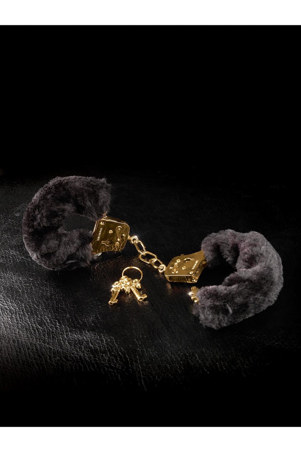Zabezpiecz swojego kochanka za pomocą tych luksusowych futrzanych mankietów Deluxe. Złote metalowe mankiety są wyściełane aksamitnie miękkim sztucznym futerkiem, aby zapewnić Twojemu kochankowi wygodę. Zaprojektowane, by grać ostro, mankiety łączą się z wytrzymałym sprzętem, aby zapewnić, że twój kochanek nie ucieknie w najbliższym czasie.