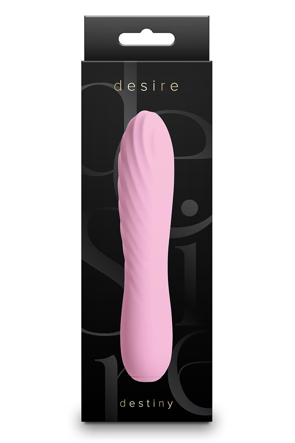Destiny by Desire is a stylish, textured compact vibe. Destiny features fierce, rumbling vibrations and powerful sensations for an intense climax. Made of premium body-safe silicone and ribbed for pleasure, Destiny is rechargeable and suitable with all lubricants. 3 speeds / 7 functions.