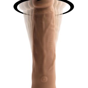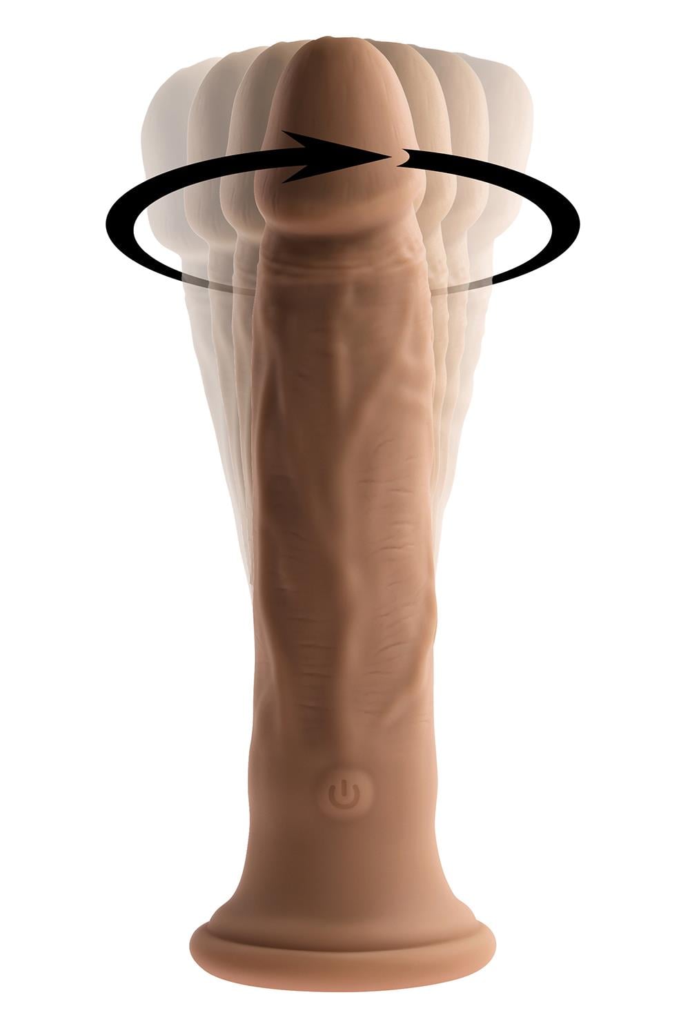 Czy kiedykolwiek doświadczyłeś wirujących wibracji? To pyszne, zawrotne uczucie czystej przyjemności, które sprawi, że będziesz wracać po więcej tego cudownie realistycznego donga! Steruj niezależnymi funkcjami zdalnie z odległości ponad 5 metrów – 3 prędkości obrotowe rozpoczynające się od wału centralnego oraz 8 prędkości i wzorców wibracji w realistycznej głowicy. W pełni ładowalny, zanurzalny w wodzie i wolny od rąk, dzięki mocnej podstawie z przyssawką.