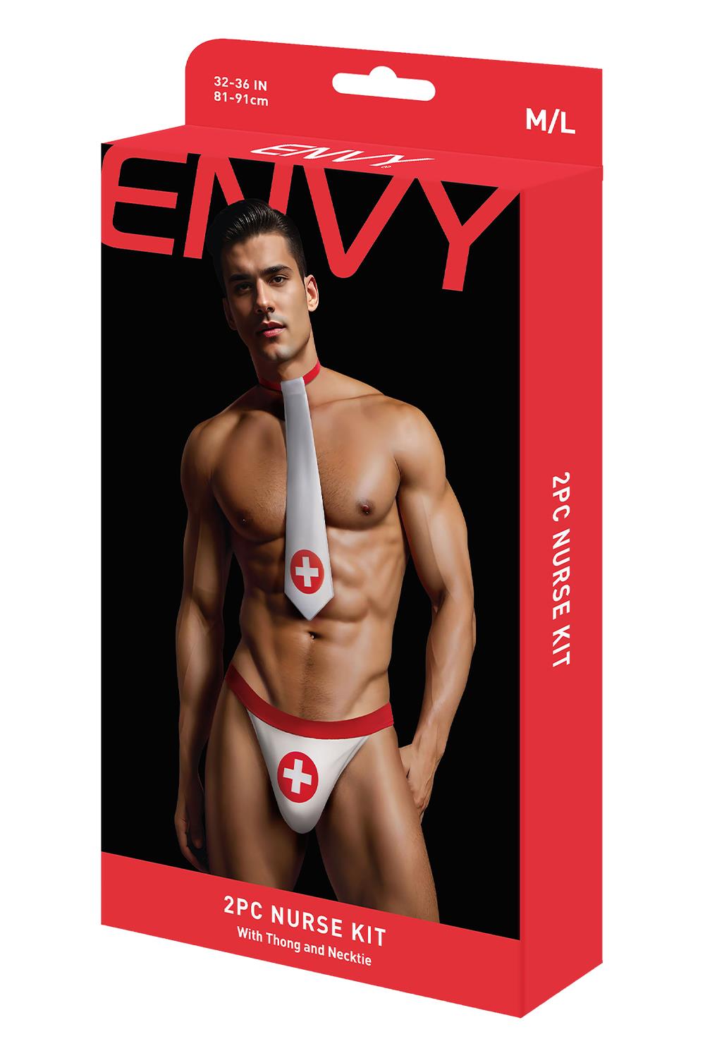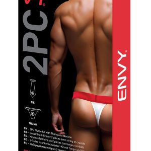 Dwuczęściowy zestaw kostiumów pielęgniarki Envy Menswear stanowi zabawne i prowokacyjne podejście do tradycyjnego stroju pielęgniarki. W zestawie klasyczny krawat ozdobiony odważnym napisem „Zdrowie plus”, łączący w sobie odrobinę symboliki medycznej z szczyptą uwodzenia. Czerwono-biała kolorystyka dodaje całości żywego i pociągającego elementu. Dopełnieniem stylizacji są odważne stringi, które podkreślają całościowy urok. Ten zestaw kostiumów płynnie łączy świat fantazji i opieki zdrowotnej, co czyni go kuszącym wyborem dla osób poszukujących wyjątkowych i przyciągających wzrok kostiumów.