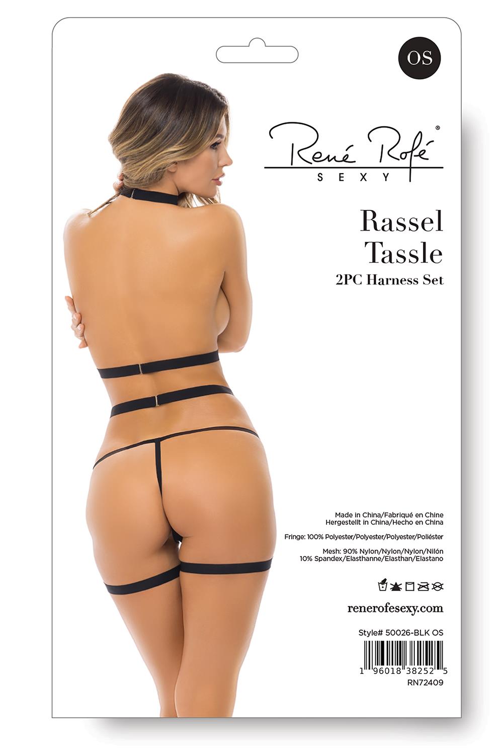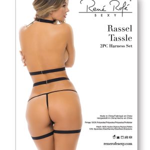 Dwuczęściowy zestaw uprzęży Rassel Tassle. Ustąp miejsca swojej wewnętrznej dominacji i usidl ją tym uwodzicielskim, jedynym w swoim rodzaju 2-częściowym zestawem uprzęży. Ten wyjątkowy element ma wyraziste paski z grafiką oraz gładkie, zwiewne frędzle z przodu. Pielęgnacja tkanin