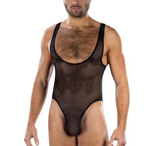 Dare to dominate with the Fierce Deep-V Mesh Bodysuit. This intensely provocative piece is crafted entirely from a sexy, sheer diamond-patterned fishnet mesh, designed to showcase your physique from every angle. It features a dramatically deep scoop neck that plunges low across the chest, perfectly framing your pectorals and shoulders with a powerful, athletic silhouette. The close, form-fitting cut ensures maximum contouring through the torso, leading down to a cheeky, high-cut leg line for an undeniably bold and masculine presentation. Whether worn for intimate nights or as a daring clubwear statement, this bodysuit embodies raw confidence and unstoppable style.Packaging: Box w/ Hang TabMaterials: 85% Polyester, 15% Spandex