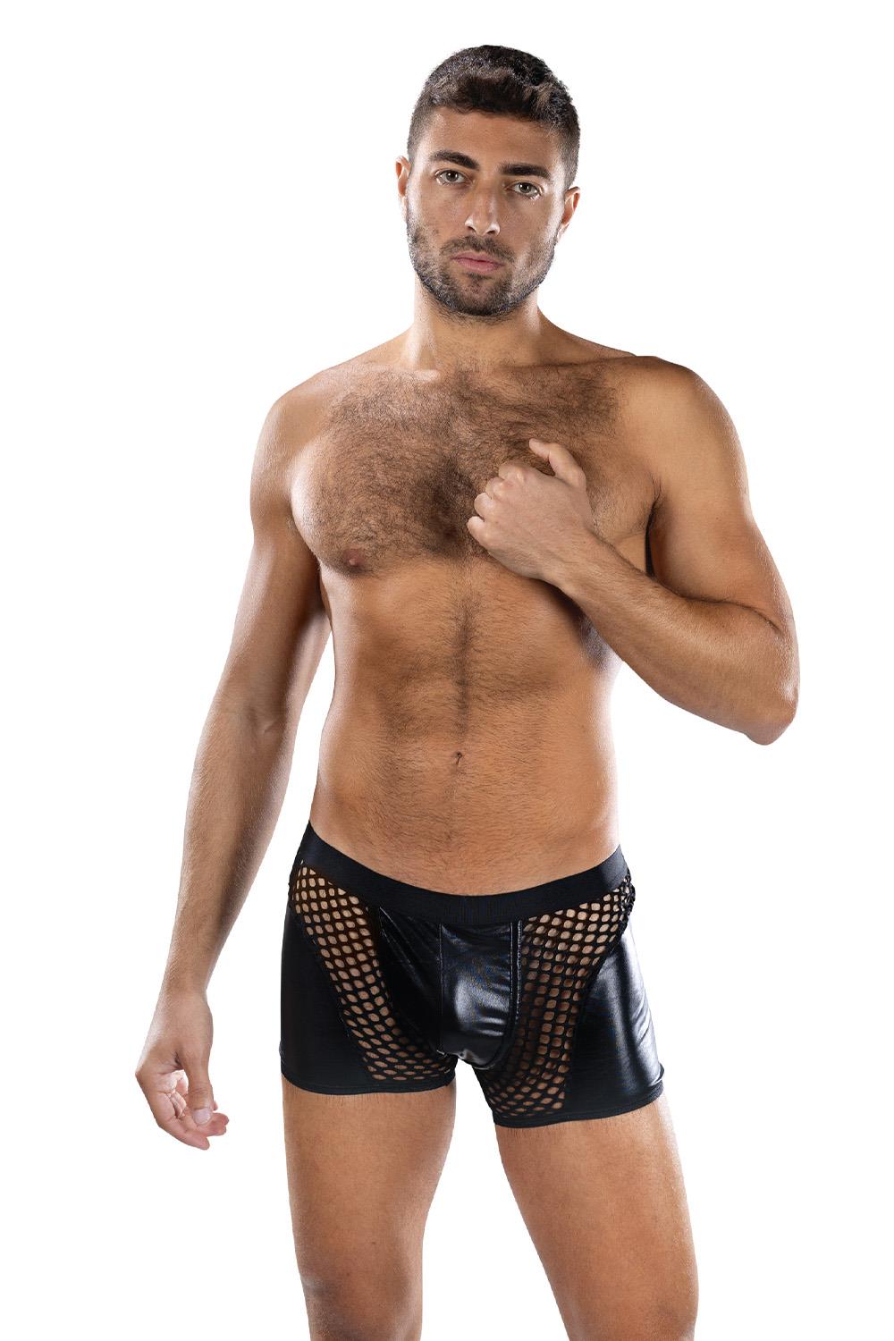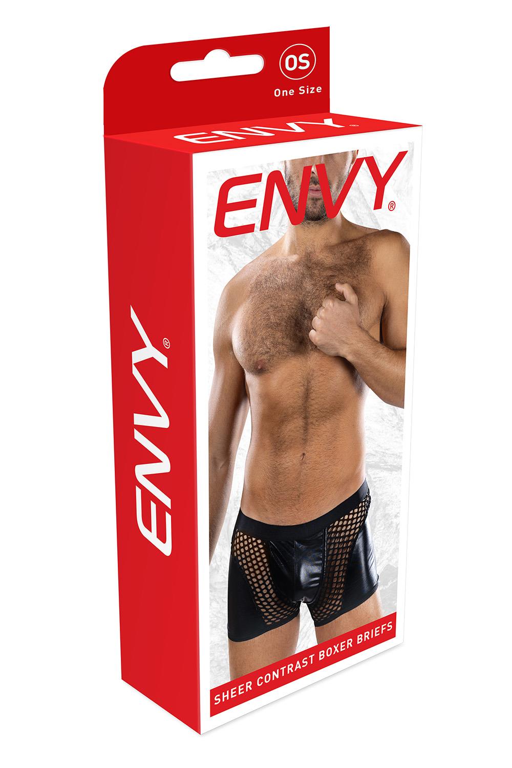 Introduce an electrifying edge to your underwear collection with the Sheer Contrast Boxer Briefs. This daring men’s piece masterfully blends bold design with a provocative aesthetic, featuring a lustrous, form-fitting front pouch that highlights and defines, seamlessly transitioning into sleek, solid side panels. The true allure lies in the striking contrast of open-hole mesh fabric that forms the outer thigh and back, offering tantalizing glimpses of skin and an undeniably sexy appeal. Crafted for both comfort and visual impact, these boxer briefs are designed to hug your physique, ensuring a confident and unforgettable statement whether for intimate moments or as a bold foundation for any outfit.Packaging: Box w/ Hang TabMaterials: 92% Nylon, 8% Spandex