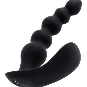 Bead me up, please! This flexible, curved, vibrating shaft features graduated beads that tease and titillate from small to large, tapering to a gentle tip at the point of entry. Meanwhile, vibrations simultaneously emanate from the bulbous chunky foundation that provides more intense intimate stimulation, doubling as a wide safety base and comfortable navigation handle.10 vibrating speeds and patternsMade from phthalate and latex free SiliconeRemote made from ABSUSB magnetic rechargeable, cable includedUSB-C rechargeable remoteWaterproofHeight: 6.62 inch / 16,8 cmDepth: 4.68 inch / 11,9 cmWidth: 1.70 inch / 4,3 cmInsertable length: 5.75 inch / 14,6 cmInsertable diameter: 1.43 inch / 3,6 cmRemote dimensions: Height: 2.45 inch / 6,2 cmDepth: 0.81 inch / 2 cmWidth: 1.40 inch / 3,6 cmRemote range 25’ / 7,6 meters