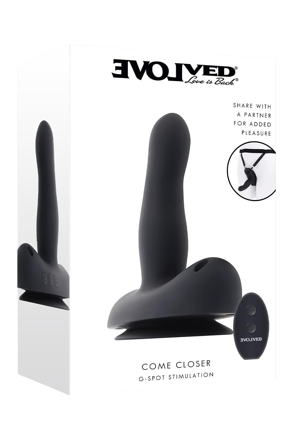 Come Closer to intense ecstasy with this remote-control pleasure-base vibrator and its tantalizing come-hither motion. Choose your rhythm and allow the reverberations to send waves of pleasure throughout your entire body while the hard-working shaft beckons the G-spot with an independently controlled motor. All with a harness to hold the toy in place if you desire.10 vibration speeds & patterns10 come-hither speeds & patternsHands-free grind pad vibrator & harness2 motors in head of shaftInsertable length: 3.75 inch / 9,5 cmDiameter: 1.31 inch / 3,3 cmHarness waist size: 25” – 54 inch / 63,5 – 137,2 cmMade from phthalate & latex-free siliconeRemote range: 32′ / 9,7 metersWaterproof IPX-6 shower friendlyRechargeable, USB cable includedLab tested body safe