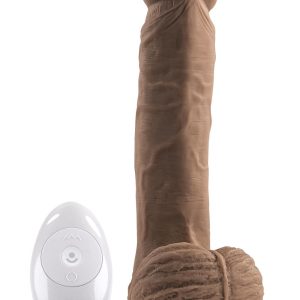This deliciously realistic vibrating dildo is robust and multi-functional with 7-speed twirling and twisting in the top half of the shaft and intense 8-speed vibrations throughout. A powerful suction cup base adheres beautifully to any hard surface while the 25’ range remote control lets you operate both motors independently. Crafted to look just like the real thing – complete with textured balls and crown tip – this large life-like toy is magnetic rechargeable, splashproof and easy to clean.Large realistic thrusting, twirling remote vibrator8 Vibrating speeds & patterns in the shaft7 Twirling & thrusting speeds & patterns (0.5″ / 1,3 cm thrust)Made from creamy smooth siliconeRemote made from ABS plasticHeight: 9” / 22,8 cmDepth: 3.26” / 8,3 cmWidth: 2.51” / 6,4 cmInsertable length 6.5″ / 16,5 cmInsertable diameter 1.65″ / 4,2 cmRemote:Height: 3.15” / 8 cmDepth: 0.9” / 2,3 cm Width: 1.68” / 4,3 cmRemote range 25′ / 7,6 metersPhthalate & latex-freeMagnetic rechargeable, USB cable includedRemote uses one CR2032, includedSplashproof