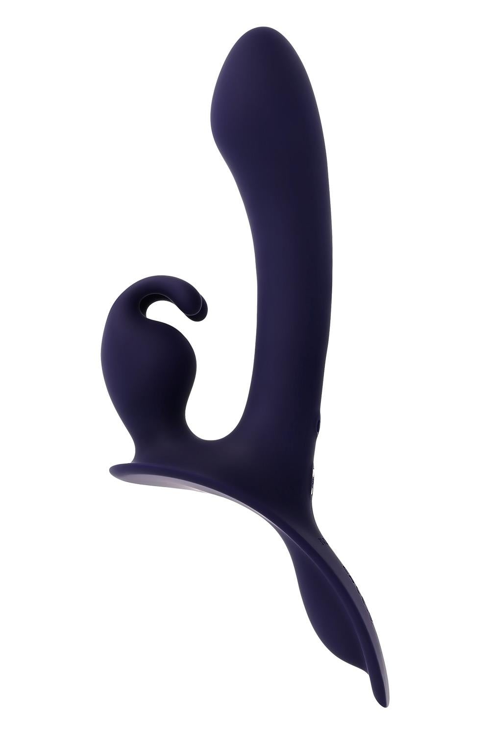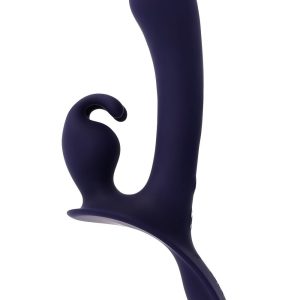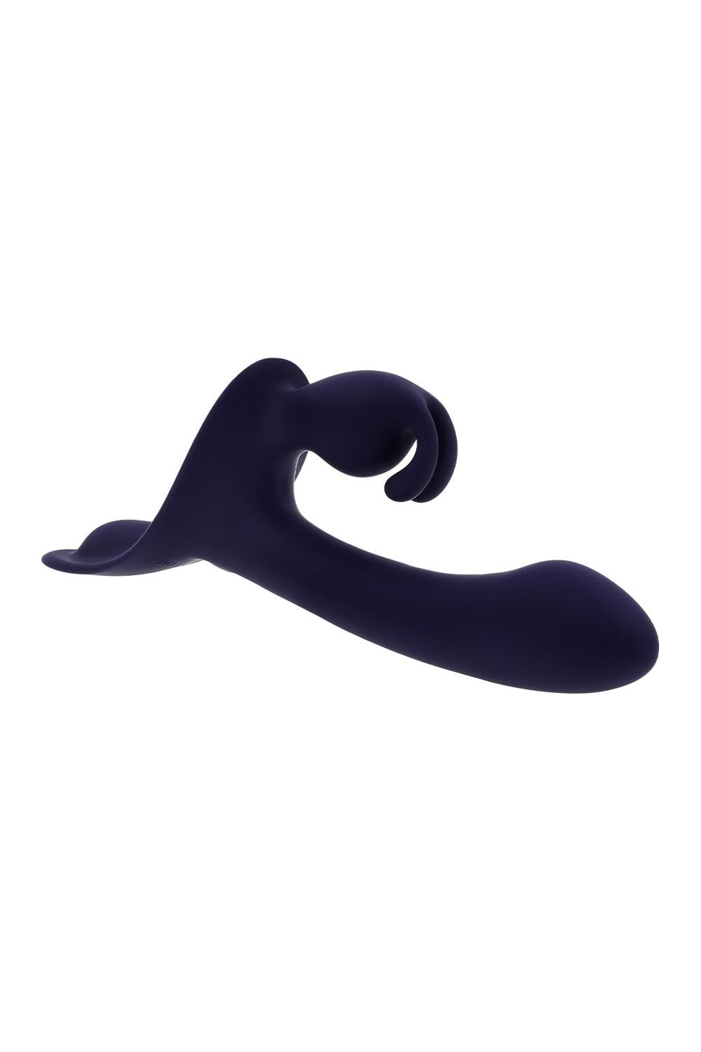 Give and receive intense pleasure with this strap-on triple-motor vibe that features a curved, chisel-tip main shaft, chunky bunny-eared stimulator, and a third tail flap motor that makes contact with the wearer. Every part of this unique silicone vibe is flexible to move with body motion, and the waist and thigh harness straps are completely adjustable. A sturdy ring holds the vibrator in place for maximum comfort and navigation.3 motors controlled together9 vibrating speeds & patternsMade from phthalate & latex-free siliconePolypropylene buttons & polyester strapsUSB magnetic rechargeable, cable includedABS remote, magnetic rechargeableRemote range 15’ / 4,5 metersHeight: 9.5 inch / 24,1 cmDepth: 5.5 inch / 14 cmWidth: 2.29 inch / 5,8 cmInsertable length: 5.75 inch / 14,6 cmInsertable diameter: 1.51 inch / 3,8 cmRemote dimensions:Height: 3 inch / 7,6 cmDepth: 0.83 inch / 2,1 cmWidth: 1.27 inch / 3,2 cmWaterproof & submersible