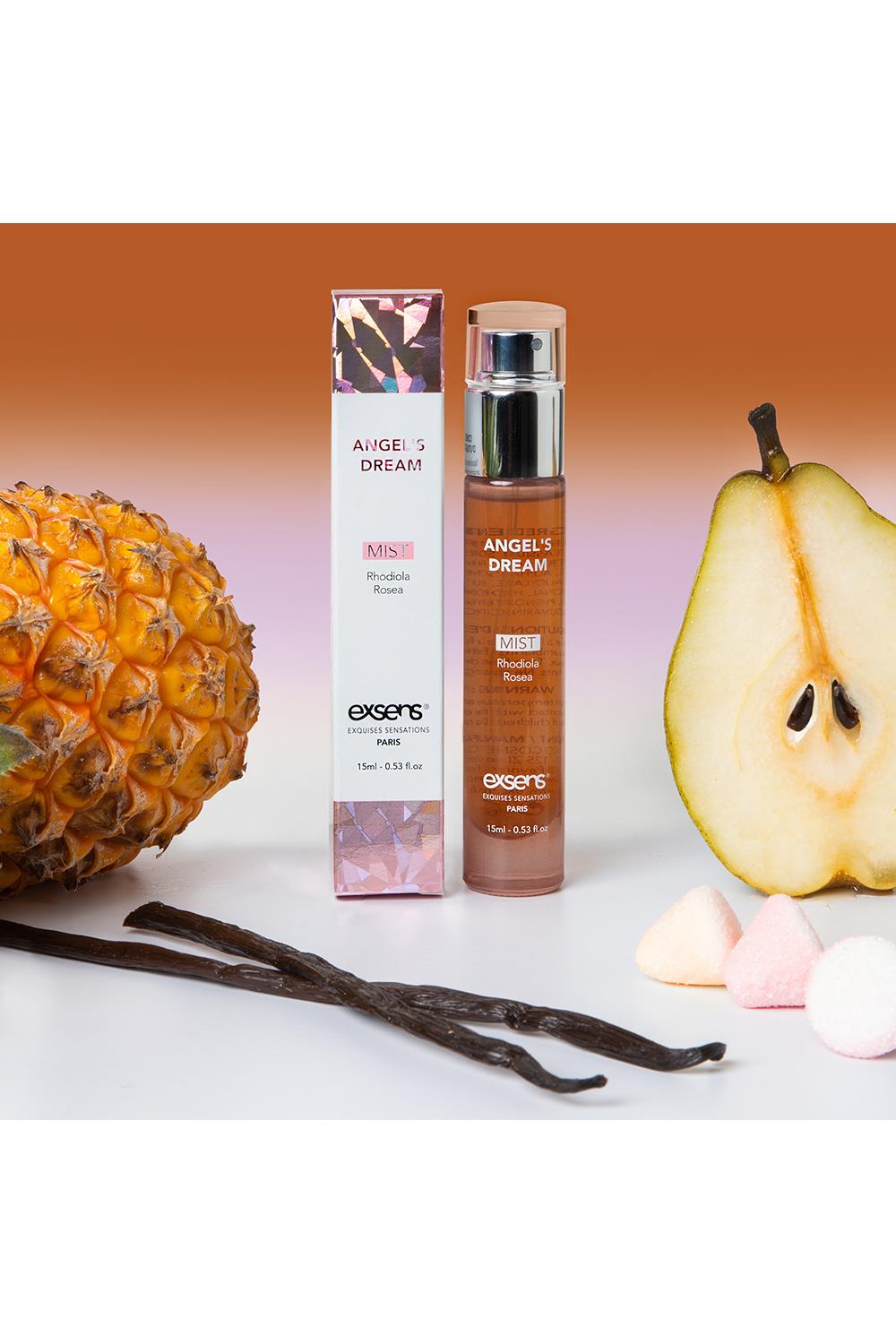 Let happiness show you the way! Let this heady scent take away your worries! Made with the essence of an amazing plant found only in the Arctic, Angel’s Dream is your invitation to euphoria. What are you waiting for? Happiness is just a mist away!Composed of roots of Rhodiola Rosea, an adaptogenic plant described as „increasing resistance to stress, performance in case of fatigue”. This plant therefore increases the natural production of endorphins by increasing resistance to stress and fatigue.Top note: Bergamot, Pineapple and Lily of the ValleyHeart note: Pear, PlumBase note: Vanilla, Musk, Cedar and AmberFor body and hairEasy to carry pocket sizeIngredients:
