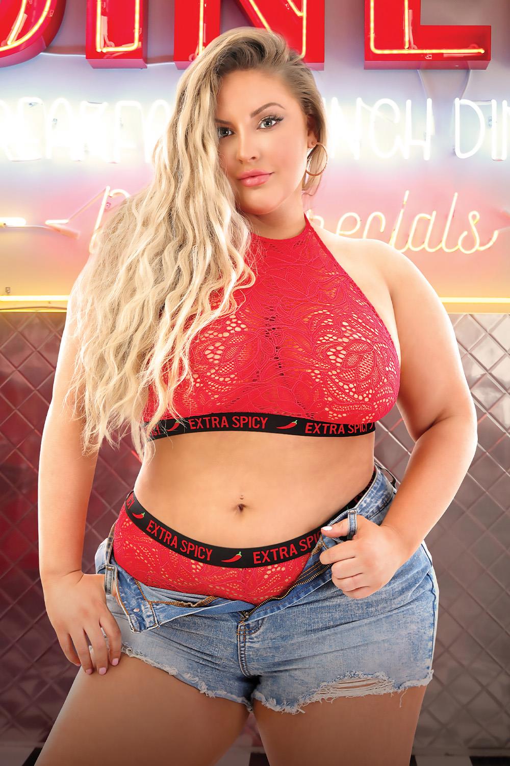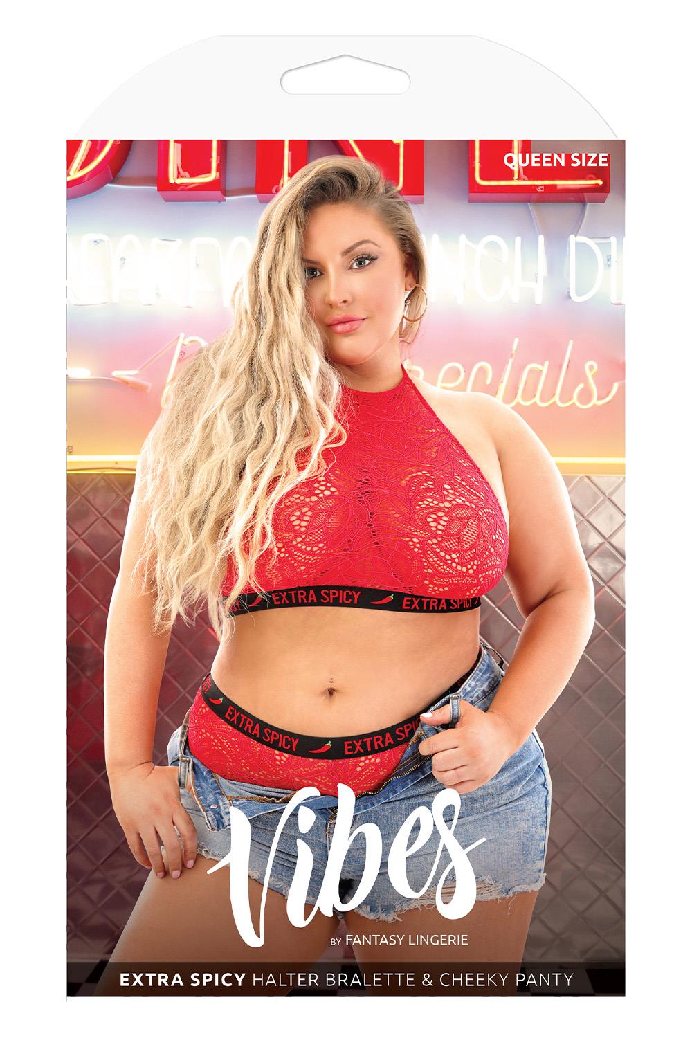 EXTRA SPICY LACE HALTER TOP & CHEEKY PANTY RED, QS