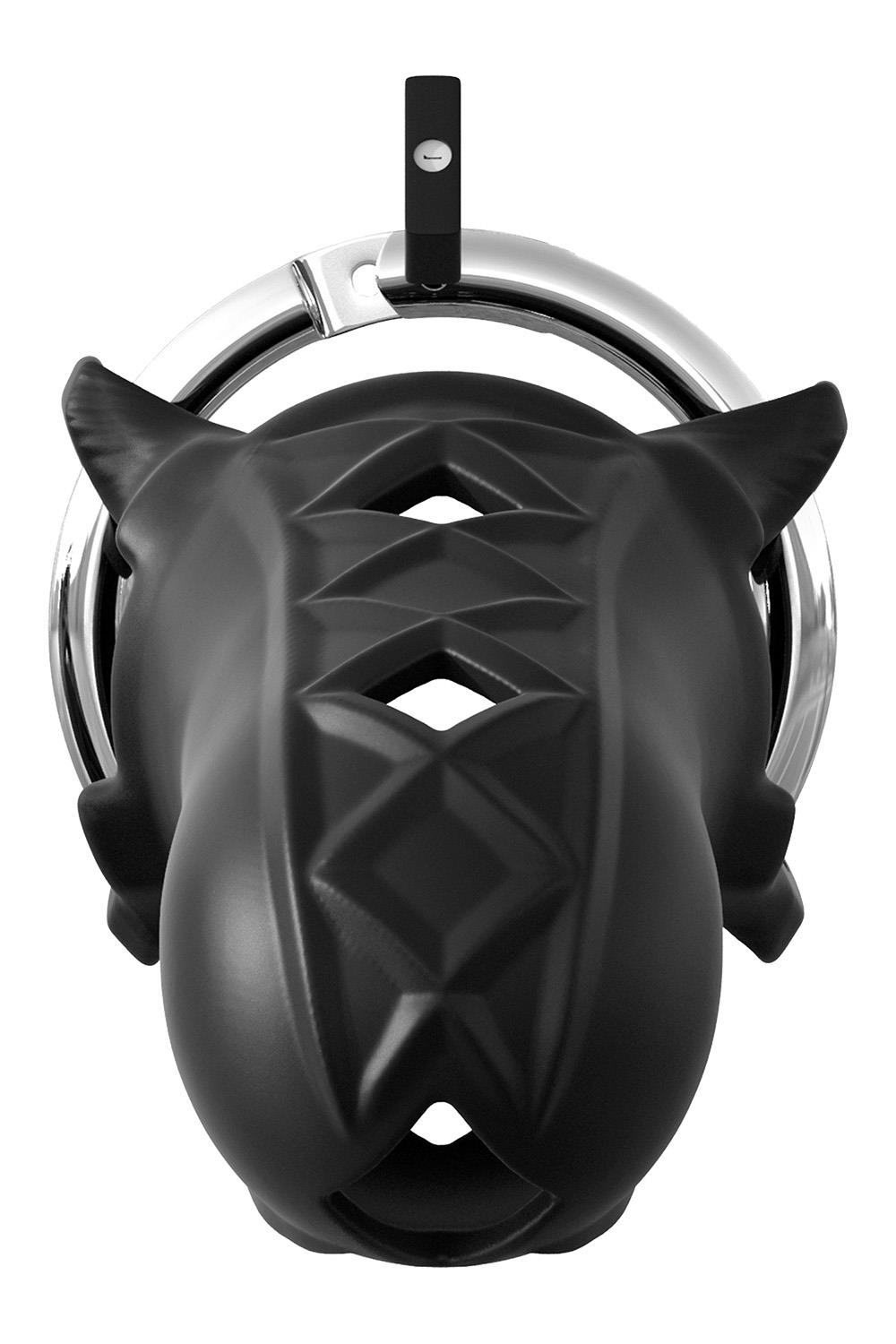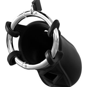The silicone cage is easy to wash and super-hygienic. The vent holes allow you to clean your subject’s package while they still wear the cage, and the ring is made from high-grade stainless steel. The silicone sleeve has a small pee-hole to assist urination, and the entire device can be worn under clothing for amazing one-of-a-kind thrills! To install the silicone sleeve onto the metal ring, make sure the metal ring’s opening is facing upwards and slide both pairs of silicone loops onto each side of the ring. Once you’ve looped the silicone sleeve onto the steel ring, choose one of the 3 holes and install one of the locks.