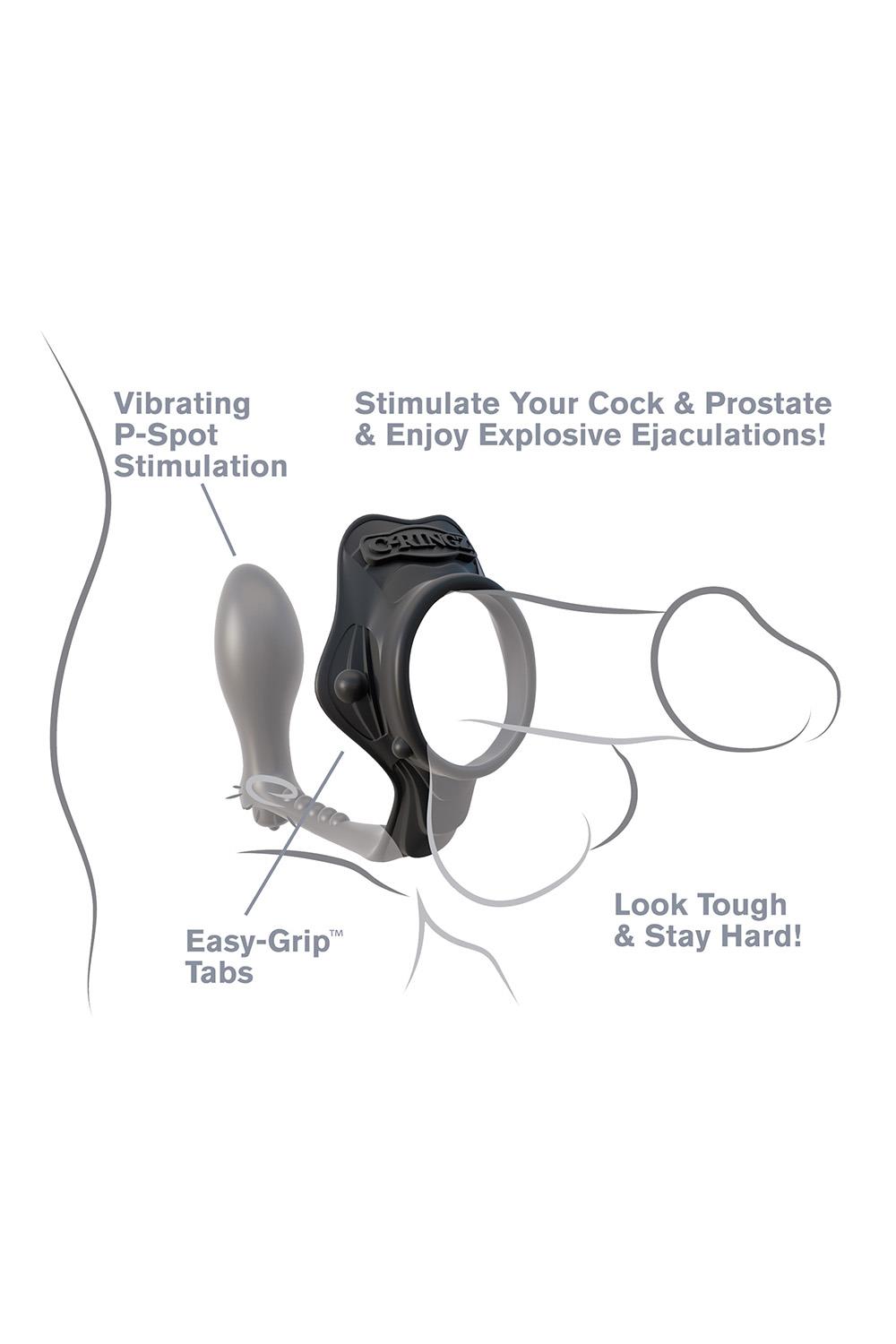 Made from our silky-smooth Elite Silicone™, this dual-action cock ring doubles as a wearable P-Spot plug, allowing you to prolong ejaculation and extend the fun while enjoying an incredible prostate massage. With the Rock Hard Ass-Gasm® in your ass and the ring wrapped snug around your cock and balls, you’ll stay harder and stronger than ever before! The stretchy silicone ring puts the squeeze on performance letdowns, maintaining thick, throbbing erections that last longer! The round, smooth plug makes entry and retrieval a snap, while the thin, tapered shaft ensures the plug will stay in place between your cheeks when the action heats up. The comfortable wrap-around shield gives you extra support and lets your lover know that you mean business. You’ll look bigger, tougher, and get harder than ever before while you enjoy powerful, explosive orgasms.