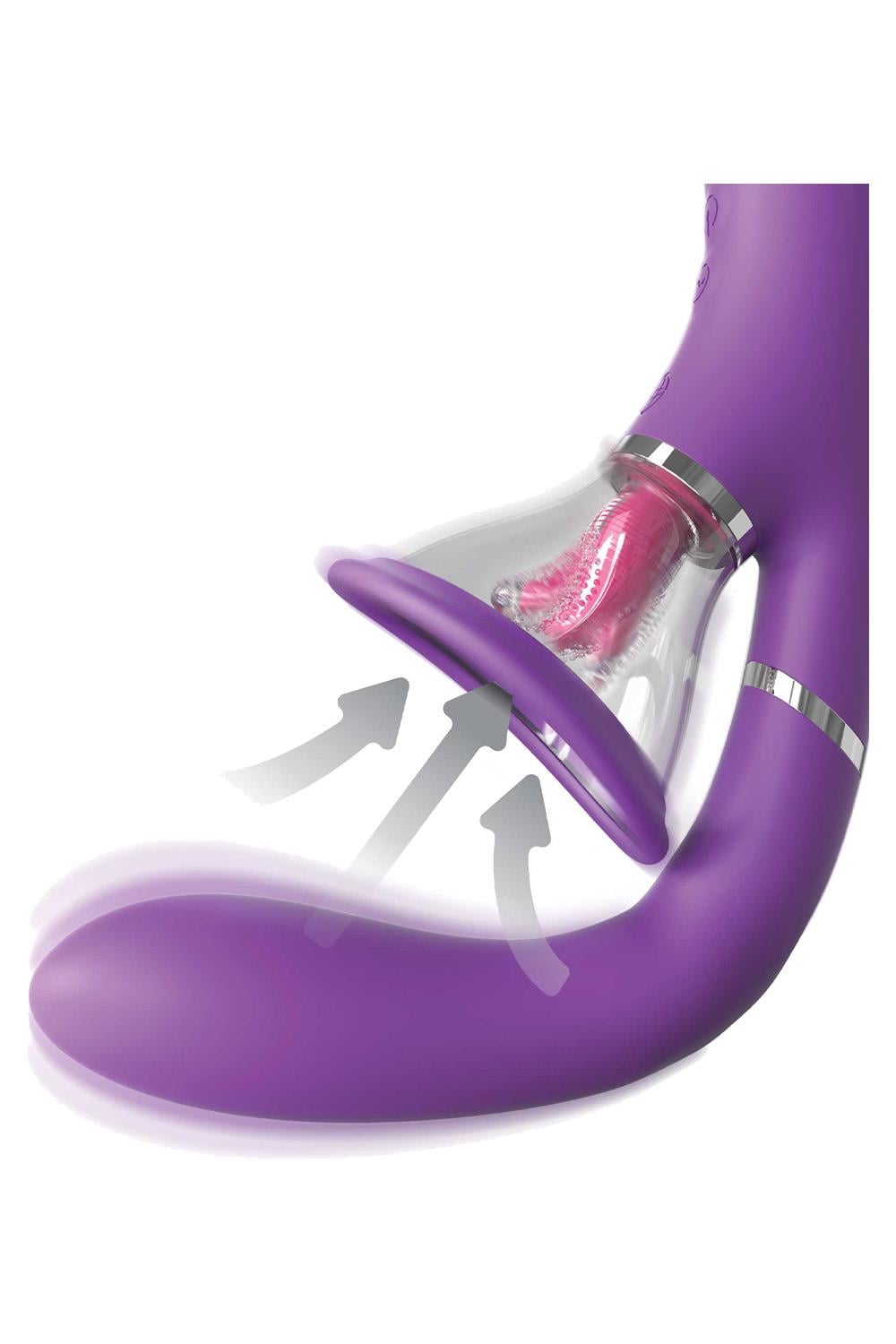 But wait—there’s more! In tandem with the tongue and suction action, a flexible g-spot vibrator provides powerful internal vibrations, sending waves of pleasure right where you want them! It’s an incredible 4-in-1 joyride that you’ll never want to end. What are you waiting for? Take the tantalizing trip today!