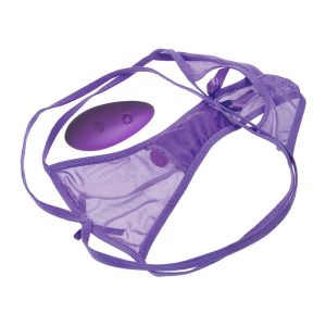 She slid the purple panty up her legs. The see-through material was incredible sexy and it felt sensuous against her bare skin. She liked the extra details like the decorative panty straps that made this panty fit better than her expensive lingerie and made her look even more seductive. Ah, she admired her favorite panty accessory, the miniature massager, and placed it securely inside her panty’s secret inner pocket. It fit just like it belonged there. Which, of course, it did. She had chosen this petite panty thrill-her specifically to give her lover an incredibly memorable evening. Maybe she should try it first herself before allowing her lover to take command of the wireless remote control.