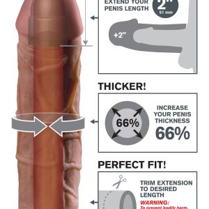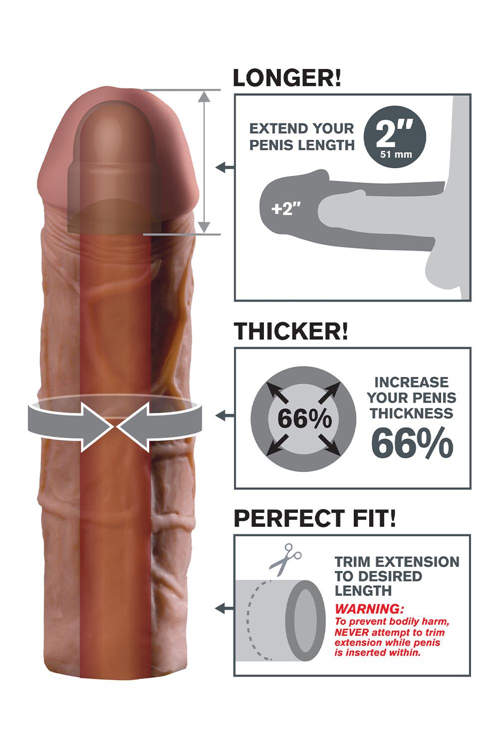 The Mega 2″” Extension is a customizable extension that can be easily trimmed at the base for a perfect fit. It’s super-stretchy to accommodate most sizes and snug enough to help you last longer. Your partner will enjoy deeper penetration with the 2″” extension at the tip, while the ultra-lifelike shaft makes you 66% thicker all around. The soft Fanta Flesh® material feels just like a second skin, giving you the length, girth, and confidence you need to satisfy your lover.
