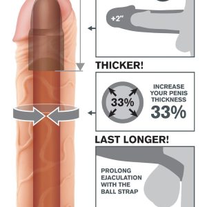 With the ball strap wrapped snug around you, you’ll prolong ejaculation for the most explosive climax you’ve ever imagined. Your partner will enjoy deeper penetration with the 2 in. extension at the tip, while the ultra-lifelike shaft makes you 33% thicker to offer a fuller feeling and exceptional climax. It’s super-stretchy to accommodate most sizes, is tight enough to help you last longer, and the super-soft Fanta Flesh® material feels like a second skin. Perfect for men with ED and midway performance problems.