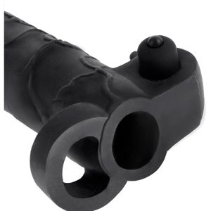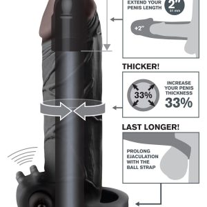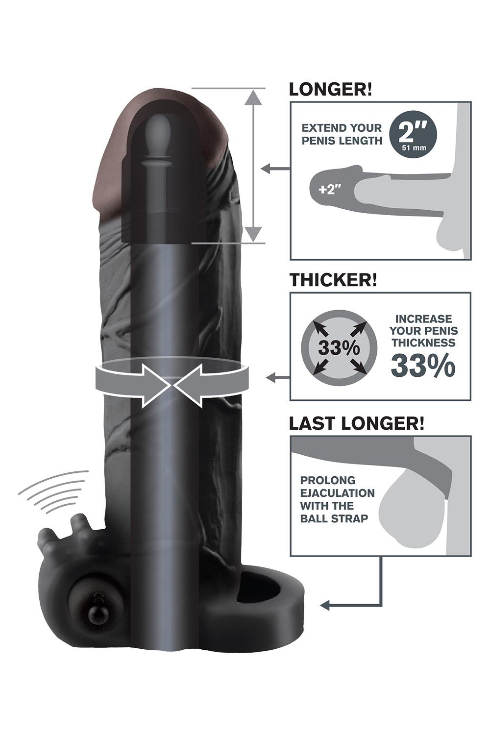 Intensify pleasure for both of you and add inches instantly with The Vibrating Real Feel 2″” Extension! With the ball strap wrapped snug around you, you’ll prolong ejaculation for the most explosive climax you’ve ever imagined. Your partner will enjoy deeper penetration with the 2″” extension at the tip, while the ultra-lifelike shaft makes you 33% thicker all around. The powerful waterproof micro vibe kicks things up a notch as the tiny clitoral stimulators deliver tingling thrills right to your lover’s most sensitive spot. This lifelike extension is super-stretchy to accommodate most sizes, is tight enough to help you last longer, and the super-soft Fanta Flesh® material feels like a second skin — only better! Try it in the shower or spa and turn bath time into pleasure time!