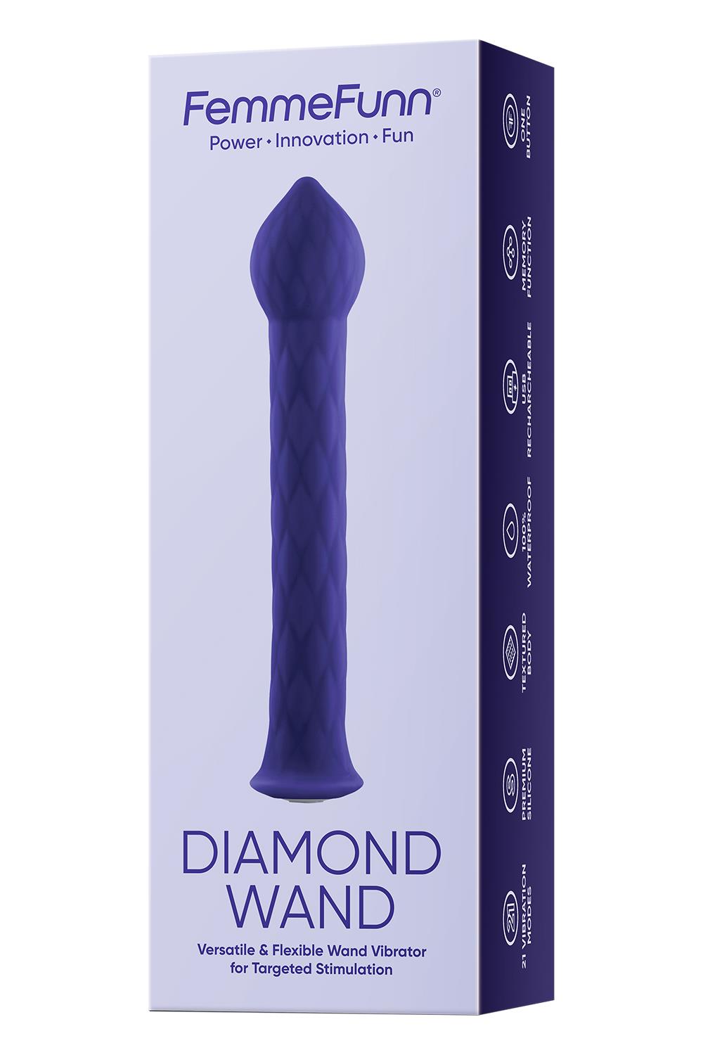 Versatile & Flexible Vibrator Wand for Targeted StimulationThe magic of Diamond Wand lies in its versatility. With a pointed yet rounded tip, textured and flexible body, and flared base, this waterproof vibrator offers endless exploration. Take advantage of its 21 powerful vibration modes and silky silicone feel to experience targeted stimulation of the G-spot and other erogenous zones.Its powerful motor ensures 21 satisfying vibration modes and great G-spot stimulation. Mighty as it is, the wand is whisper-quiet and compact.The texture and silkiness of its 100% premium-quality silicone will enhance the sensations. Found your favorite setting? This wand will remember the mode you used last so that not a single moment of pleasure is wasted.Super flexible, waterproof, and discreet, Diamond Wand is a perfect vibrator wand to have fun with. Experiment with the patterns to prolong your pleasure or reach climax fast.Length: 6.7 inches / 17 cmWidth: 1.33 inches / 3,4 cm21 Vibration modesPremium siliconeTextured body100% WaterproofUSB rechargeableMemory functionOne buttonMaterial: Premium SiliconBattery: Li-ionCharging Voltage: 5VRun Time: Approx. 1 Hour at Highest Setting*Charge Time: Approx. 2.5 Hours* *Charging and use times are estimates only.Battery life varies over time, and all batteries experience a decline in useful life over time.