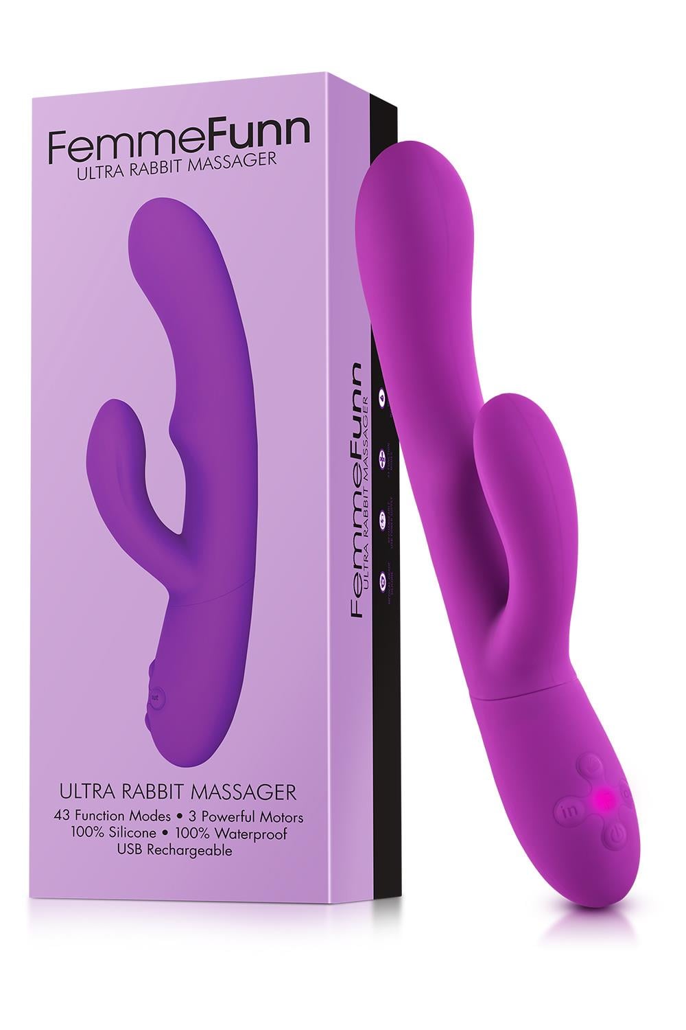 Triple Stimulation Rabbit VibratorDon’t settle for anything less than pure euphoria. Ultra Rabbit is the best rabbit vibrator and boasts a come-hither motion, contoured shape, 10 vibration modes, and a massive rabbit for mind-blowing clitoral stimulation that works for every shape and size.Enjoy independent control of 10 internal and external vibration modes backed by 3 dynamic motors and a come-hither motion that will exhilarate your G spot.Every body is unique, so we took the feedback of real people and created a one-size-fits-all rabbit with customizable settings for truly personal delight.Play hands-free. The sculpted shaft features a strategically placed ridge to prevent slips, and the 100% waterproof design makes for good times far beyond the bedroom.Length: 9.7 inches / 24,6 cmWidth: 2.8 inches / 7,1 cmInsertable Length: 5.7 inches / 14,5 cmInsertable diameter 3 cm10 Vibration modesDual stimulating headsCome hither motionPremium silicone100% WaterproofUSB rechargeableStandby modeMaterial: Premium SiliconeBattery: Li-ionCharging Voltage: 5VRun Time: Approx. 2 Hours at Highest Setting*Charge Time: Approx. 2.5 Hours* *Charging and use times are estimates only.Battery life varies over time, and all batteries experience a decline in useful life over time.