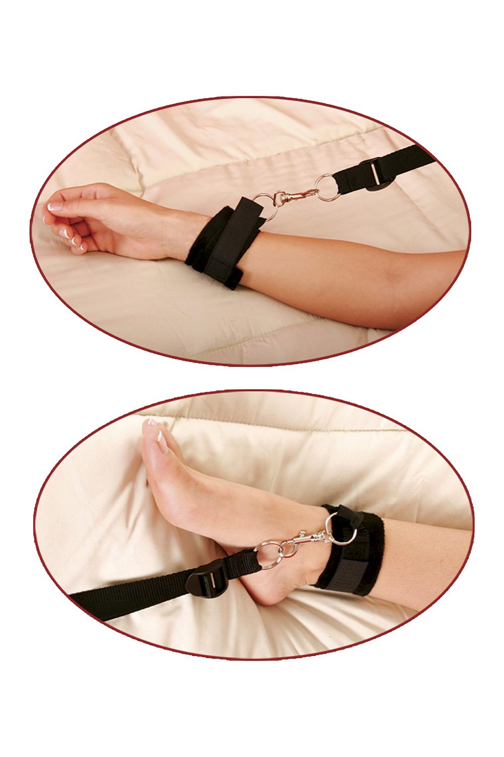 The durable nylon tethers connect to 4 super soft neoprene-lined cuffs, which easily adjust to securely hold your partner in place. Explore your deepest fetish fantasies!