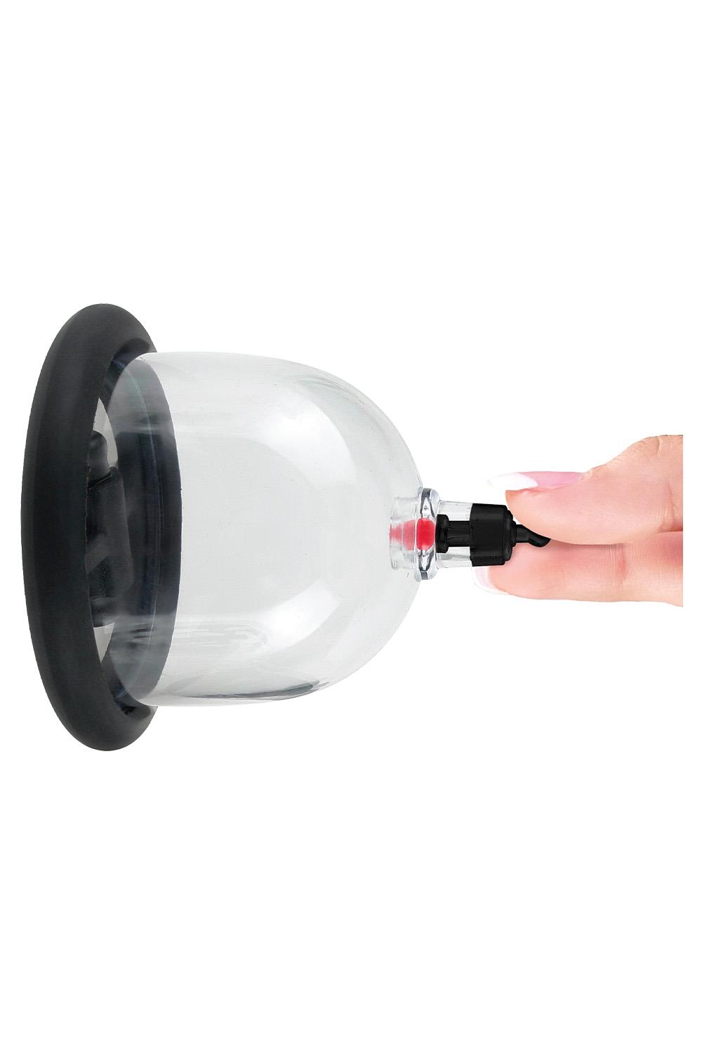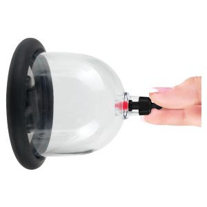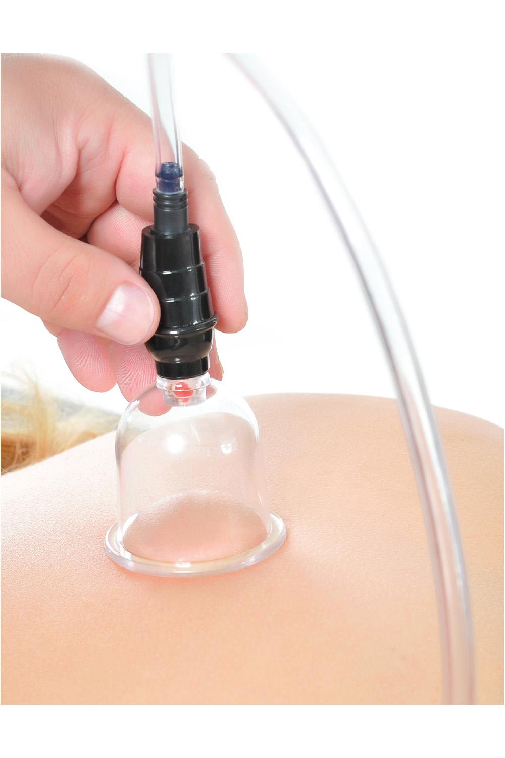 Add the sensation of suction to your fetish play with this Beginner’s 6 pc. Cupping Set. Based on ancient Chinese cupping therapy, these modern day plastic suction cups create a powerful vacuum that stimulates your hot spots and delivers amazing sensations. The suction action gently increases blood flow and excites your sensitive nerve endings, creating a one-of-a-kind feeling unlike anything you’ve experienced. The cups can be used virtually anywhere on your body but they really feel great on the nipples, clit, buttocks, or any other erogenous zone! Each cup has its own built-in release that instantly relieves pressure when you pull the black pin. To use, lightly lubricate the skin first, then attach the flexible hose to the valve on the top of each cup. Pull the EZ-grip trigger and watch your partner’s skin rise with suction. After you’ve reached your desired tension, remove the hose from the cup and the suction will remain constant until you pull the pin. The cupping set works great for BDSM medical play or for an all-over kinky massage. Once you remove the cup, the suction leaves a temporary red mark on the spot it was attached to. Be sure to pump cautiously, as excessive suction can cause breaks in capillary blood vessels, resulting in a „”hickey”” type bruise on your skin.‚