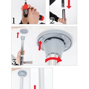Figure 4 Twist the pole clockwise until the non-skid rubber stopper is firmly secured to the ground. With each clockwise twist of the pole, the length of the pole extends, making it tighter and more stable with each twist. When you can no longer twist the pole any longer, the pole is ready to test out. Make sure the pole is perpendicular to the ceiling and test the pole for tightness and stability before use.