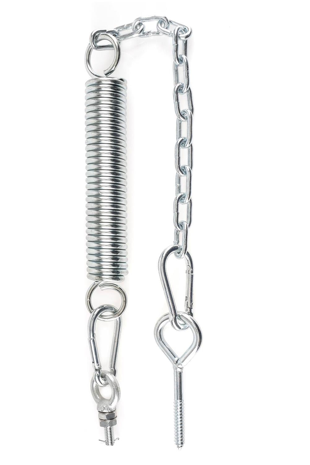 HANGING THE SWING: If the weight on the swing is less than 200 lbs., use the Torsion Spring provided If the weight on the swing is over 200 lbs., assemble the swing hardware without the use of a spring. During two-person usage, make sure to account for the position of both partners when determining the weight (one partner may be on the floor, not actually hanging from the spring).