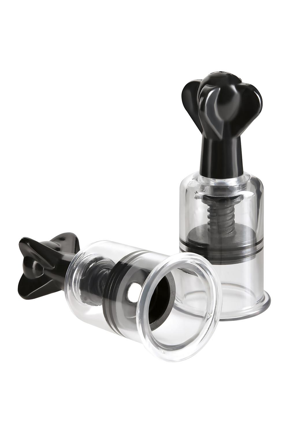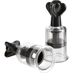 Make your nipples perk with pleasure with the Fetish Fantasy Limited Edition Super Suckers! With a few turns of the pump’s twist dial, these incredible nipple suckers create an intense vacuum that increases blood flow and makes your nipples bigger and more sensitive than ever! The powerful suction action increases with each twist, making your nipples and areola swell with satisfaction with every turn of the dial. Both partners will love the look and feel of your puffy, pert nipples and you’ll love the increased sensitivity and sensations. Your nipples will stay hard and alert for hours after, making intimate contact more enjoyable than ever before! Place the clear cylinder over your nipple and lower the suction dial counter-clockwise until it’s flush with your skin. The smooth cylinders feel great against your skin and stay in place when the action heats up! Apply a gentle amount of pressure to the cylinder to ensure a tight seal against your breast and twist the Super Suckers’ top clockwise to activate the suction. With each turn of the twist dial, the nipple sucker will increase blood flow and suck your nipple into the cylinder tube. Once you unscrew the dial and relieve the pressure, your nipples will remain hard and perky and ready for whatever happens next! Best of all, these incredible nipple pumps deliver mind-blowing suction without the use of a bulky external pump. Whether you enjoy the visual treat of your newly enlarged nipples and areolas, or you prefer the fantastic feeling you get from these amazing nipple pumps, this set of super suckers is a must-have accessory for your next fetish fantasy!‚