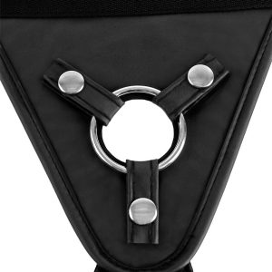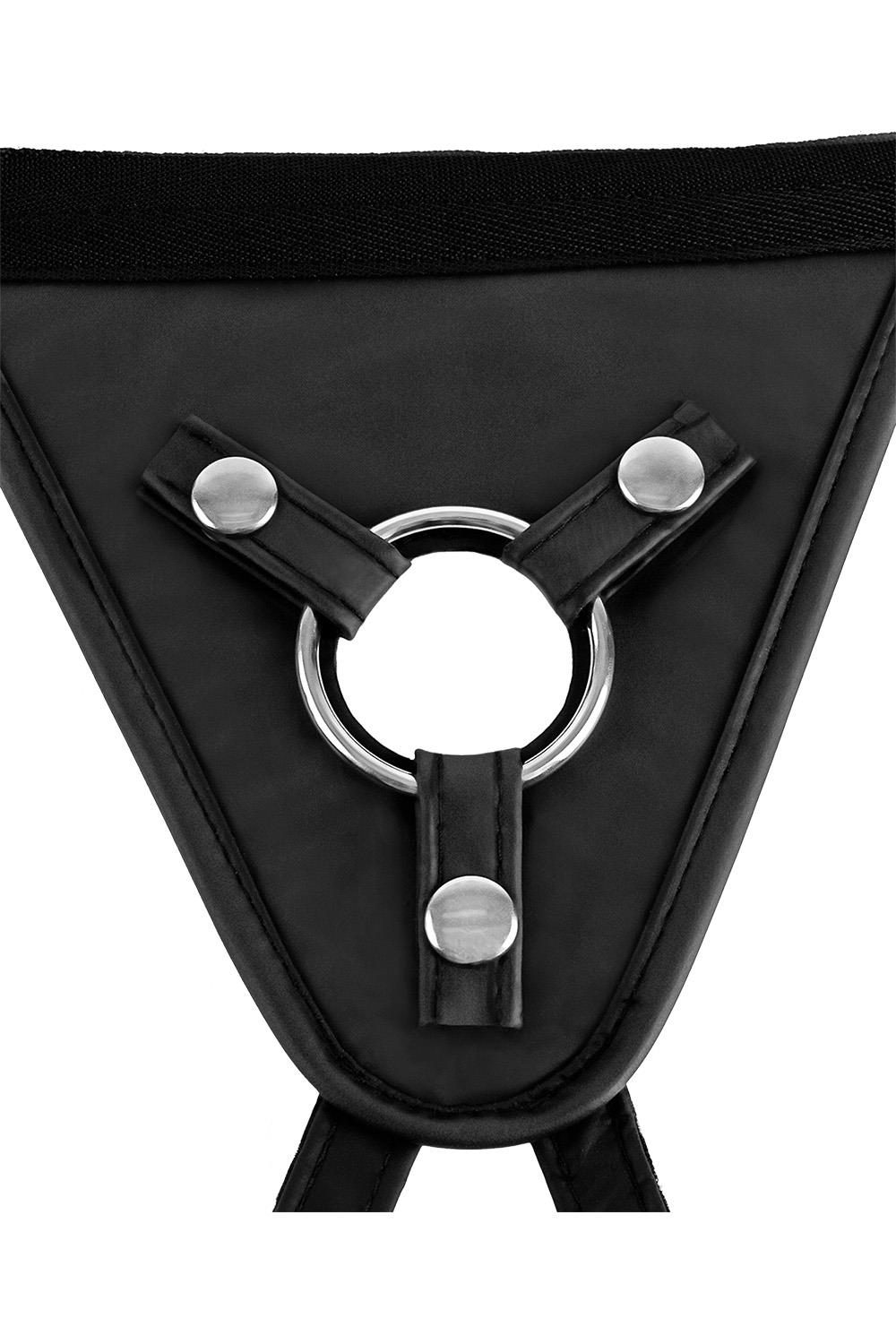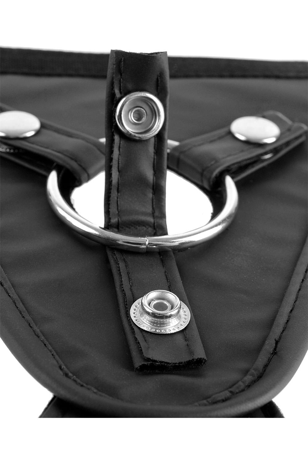 Three metal snaps secure the metal O-Ring and hold everything in place even when the action heats up. The three included silicone O-Rings allow you to interchange a range of dildos with a diameter up to 2-inches (5 cm).