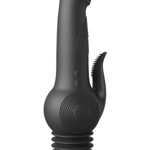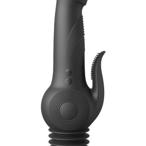 Get ready for the wildest ride of your life with our new Fetish Fantasy Series Pogo Thruster, our latest revolutionary vibrator featuring an internal gyro motor that generates 3 speeds of powerful, relentless vibrations, pulsations and gyrating action. This is intensified by a flexible, spring-loaded suction cup base, delivering rhythmic, dynamic „pogo” actions that will bounce you over the edge in ecstasy!In addition, two powerful vibrating motors,one in the head and one in the flickering textured tongue, elevate pleasure to new heights with 10 mind-blowing vibration patterns. This unique blend of features makes the Pogo Thruster an absolute must-have in your pleasure chest. Crafted with ultra-hygienic Elite Silicone, a sensual rippled shaft and tiny ticklers on the vibrating tongue take your orgasms to the next level! Use the flexible suction cup base on nearly any clean, flat surface for a hands-free thrusting thrill ride!Explore endless pleasure possibilities with your own combinations of speed and vibration patterns for a sheet-clutching orgasmic experience, whether playing solo or with a partner!Ultra-powerful gyro motor!3 Intense speeds of pulsation and gyration2 Powerful motors in the head and tongueFlexible spring-loaded suction cup baseElite silicone materialRechargeable – includes charging cordTotal Length: 9.25 inch / 23,5 cmTotal Width: 2.6 inch / 6,7 cmTotal Weight: 1.0 lb / 0,44 kgInsertable Length: 5.3 inch / 13,4 cmInsertable Diameter: 1.5 inch / 3,9 cmSuction Cup Diameter: 2.6 inch / 6,7 cmIPX Rating: IPX6Battery Type: Rechargeable Lithium-IonRun Time: 40 mins.Charge Time: 240 mins.Charger Type: Pin PlugOperating Instructions:Press and hold the VIBRATION button to initiate vibration. Press the button again to cycle through 3 intensity modes and 7 vibration patterns. Press and hold the button to turn vibrations OFF.Press and hold the THRUSTING button to initiate thrusting motion. Press the button again to cycle through 3 speeds. Press and hold the button to turn thrusting OFF.Enjoy thrusting and vibration together or separately! Experiment and combine the functions to create your own custom pleasure combinations. The possibilities are endless!Care Instructions:Cleanup is a snap after the fun with antibacterial cleaner and warm water.