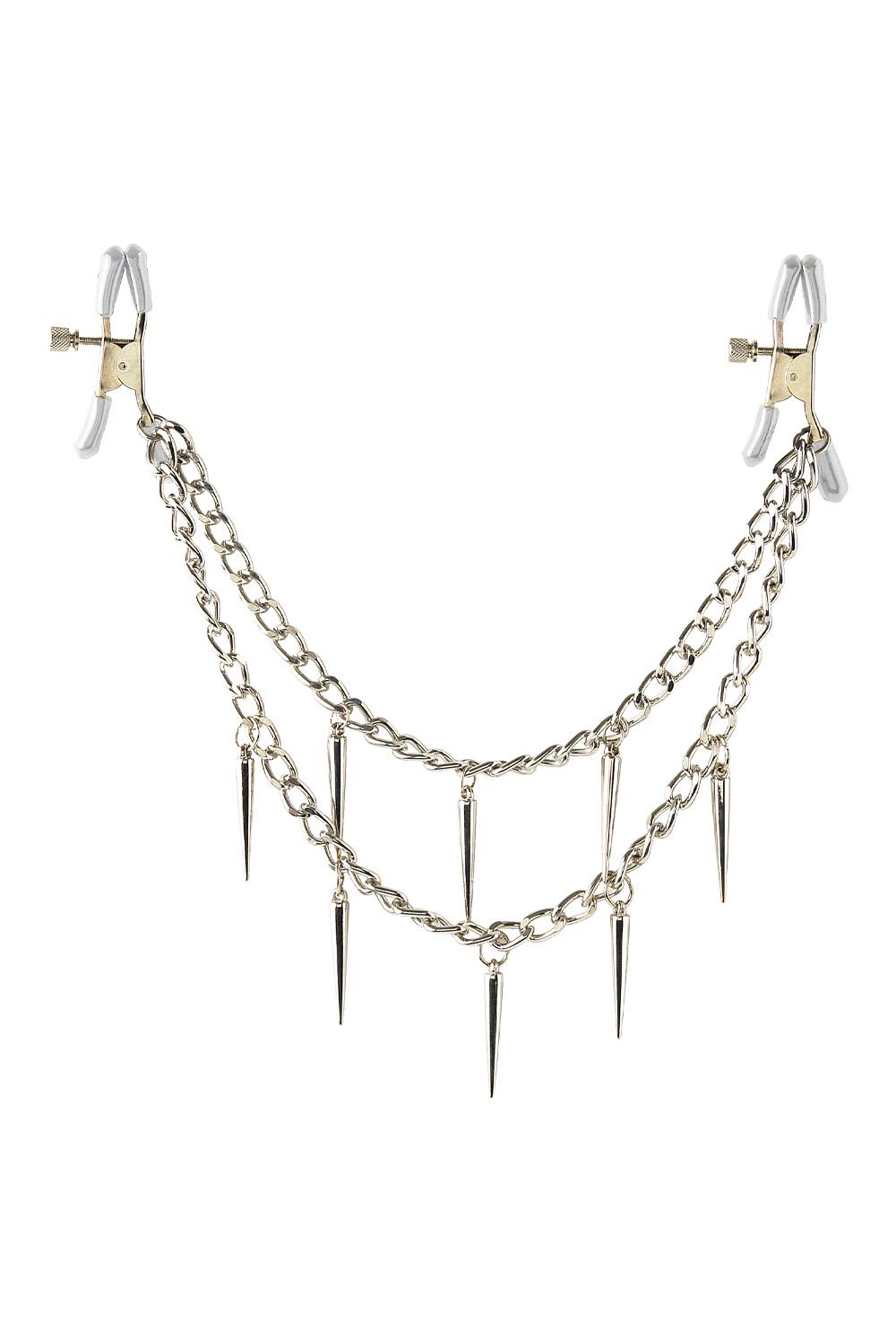 Made with durable metal clips and covered in soft rubber liners, these clamps are perfect for beginners and fetish enthusiasts alike. The amount of pressure you apply to the nipple is adjustable by turning the screw, while the two chains give you subtle stimulation with each movement.