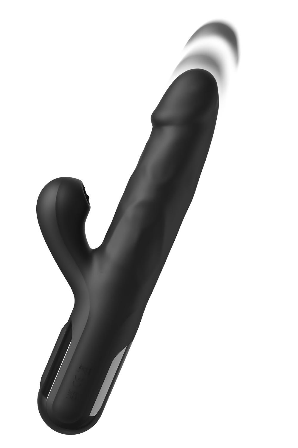Experience the thrill of hi-speed thrusting! The Sonix Silicone Thruster is THE quintessential vibrating “rabbit massager” designed to take you to the finish line like never before! Using the same mechanism as massage gun therapy, with 3 speeds of “Hi-Velocity” thrusting, you’ll get pumped with up to 700 thrusts per minute!In addition to this, it features a powerful flickering clit stimulator—a specially designed rabbit ear with three tiny flickering tongues that surround and stimulate your clitoris with sheet-clutching ecstasy! There are 10 modes of intense tongue flickering that will curl your toes and give you the ability to find that sweet spot! And if that’s not enough, 10 vibration modes at the tip of the thruster are sure to take you to the finish line!Made with Elite Silicone™ and designed with a realistic textured shaft, the Sonix Silicone Thruster is the one “rabbit vibe” that checks all the boxes for ultimate satisfaction. Thrusting will never be the same!Product ships with Travel Lock on for discretion. It will automatically unlock upon charging product. Press top 2 buttons for 5 seconds to lock/unlock.Elite Silicone materialUSB magnetic recharging: Charge product using included magnetic charging cordTravel lockMaterials: Silicone & ABS PlasticProduct Width: 1.4 inch / 3,5 cmProduct Length: 8.7 inch / 22 cmBatteries & Power:Charger Type: Magnetic / USB-ACharging Time: 160 minutesPrimary Battery Type: Rechargeable Lithium-IonIPX6: Water-Resistant – Protected against high-pressure water streams from any angle. Do not submerge this product in water