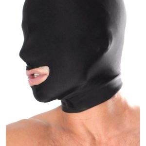 The shiny black hood can be worn by him or her, and the thin lightweight fabric makes breathing and hearing a snap. Best of all, you still have access to your subject’s mouth!