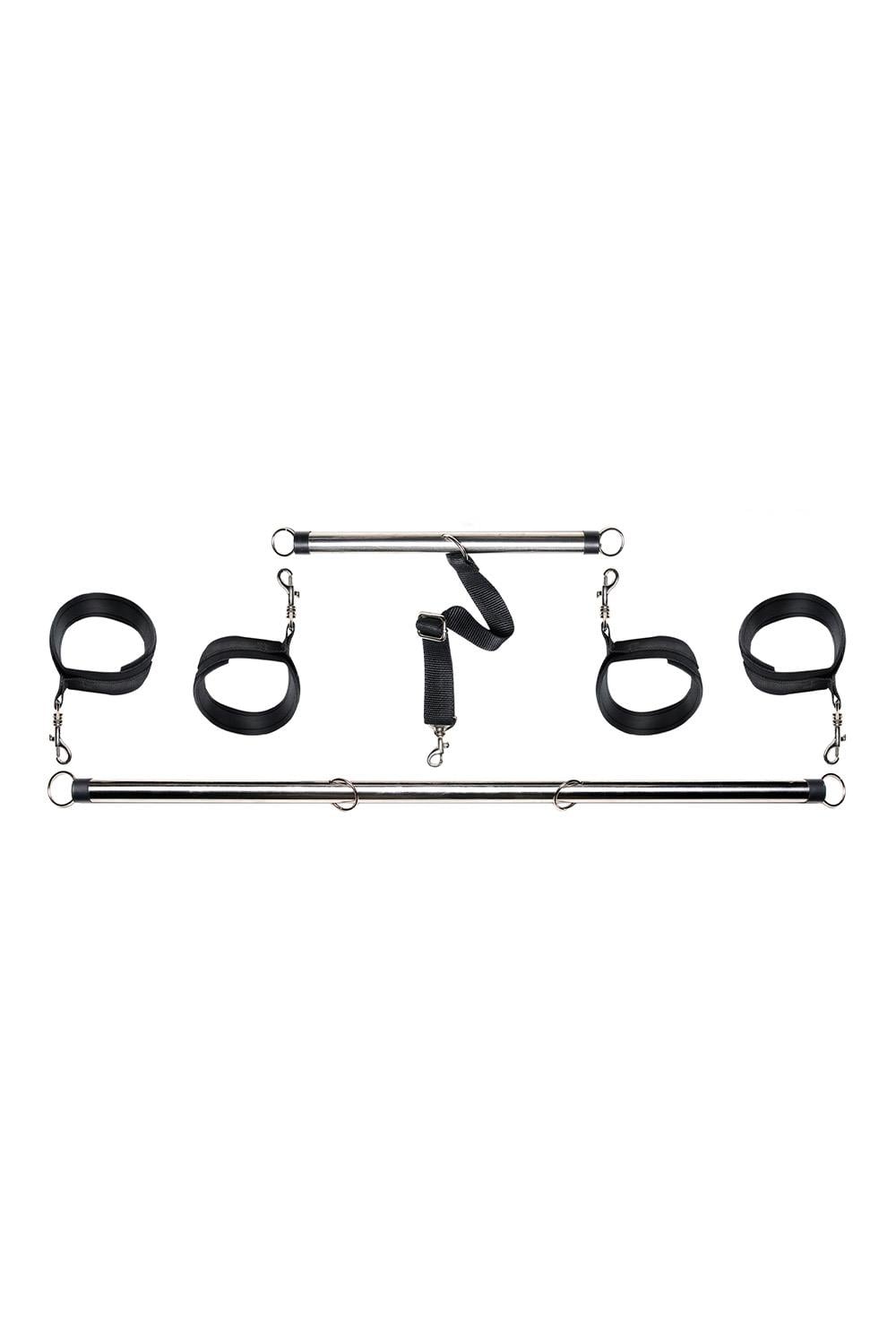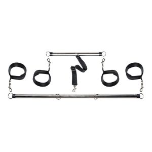 Welcome your lover with open arms and legs with this incredible Spread 'Em Bar & Cuff Set! This kinky set of metal spreader bars will put you or your partner in the right position for pleasure every time. Attach the adjustable wrist and ankle cuffs and your subject won’t be able to close their thighs or wrists. Try new positions and scenarios you never dared, and do it all with ease, thanks to the swivel-mounted cuffs which allow for some movement. The connecting nylon support strap can also be removed, giving you unlimited possibilities and exciting new positions. They’ll squirm around and squeal, but they won’t get out! Comes with a handy carrying case, too! Open wide!Includes: