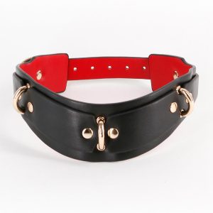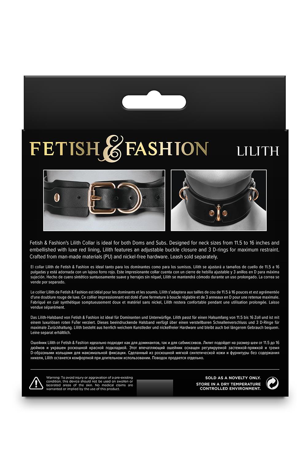 Fetish & Fashion’s Lilith Collar is ideal for both Doms and Subs. Designed for neck sizes from 11.5 to 16 inches and embellished with luxe red lining, Lilith features an adjustable buckle closure and 3 D-rings for maximum restraint. Crafted from man-made materials (PU) and nickel-free hardware. Leash sold separately.
